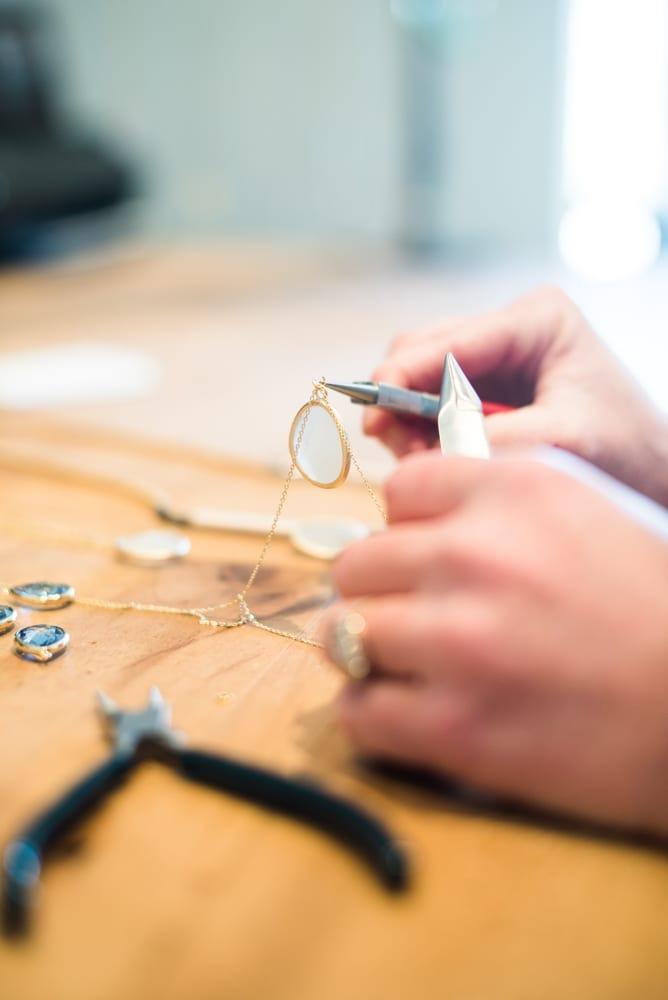 Her creative cogs began to turn, and over the next few months she made simple necklaces and earrings for her friends, blown away by the newfound ability to take pieces she liked and craft them into her own finished designs. “I come from a really creative family,” Padgett explains, “and my parents put us in all sorts of arts programs… I was always creating.” She even took a metal working class as a high school student, unaware that one day her jewelry designs would sell all over the country.