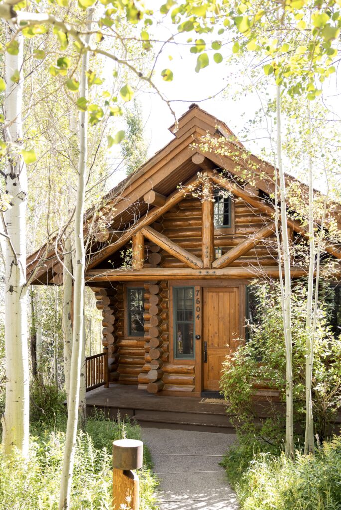 Inside, the open-concept living space includes a fully equipped kitchen, dining area, and a welcoming living room with a gas fireplace. The cabin also includes a rare Jackson Hole amenity: central air conditioning, ensuring a comfortable stay year-round. Step outside to enjoy the mountain air on the outdoor patio or unwind after a day of skiing or hiking in your private hot tub.