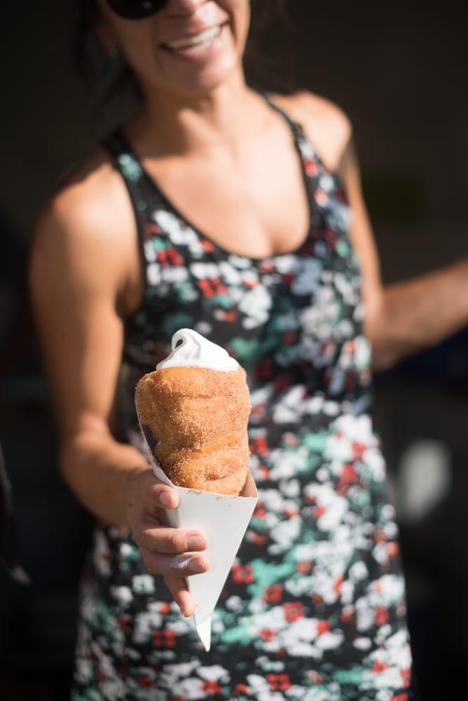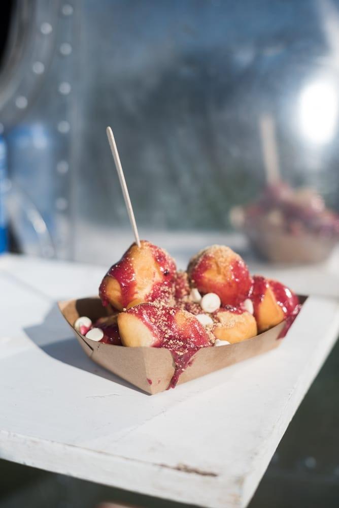 Nom Nom’s entire production takes place in the larger, original vehicle (think commercial mixers, butcher block tables, and fryers, all in an extremely confined space) and the smaller one can be found selling happy bites at JH Live, the Farmer’s Market, and other community events. Additionally, Nom Nom can be booked for private catering, and provides the mot deliciously awesome delivery service in the Valley, serving up made to order donuts 7 days a week to your home or office.