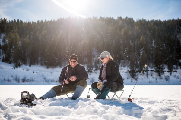 Ice fishing is heavily associated with the northern Midwest, and many are surprised to learn that it is a winter pastime in Jackson Hole as well. People conjure images of clustered shanties hunkered on frozen waterways all winter long, plush with amenities like heaters, grills and even televisions. Because so many of the best ice fishing locations around Jackson Hole are in the National Park or National Forest, rules around the sport are much stricter. You certainly won’t find any pickup trucks or satellite dishes on shanties around Slide or Jackson Lake, but on a sunny winter day, you’re bound to see at least a few ice fishermen.