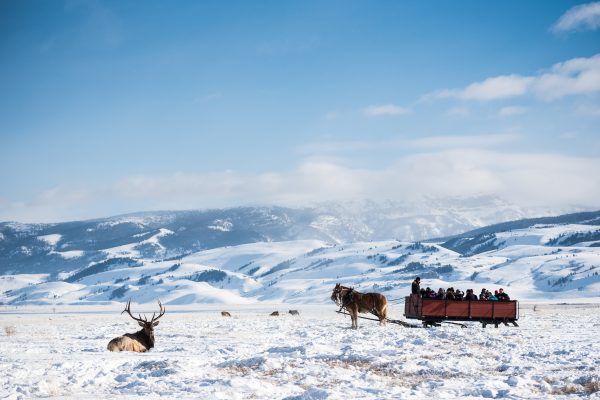 Experience the remarkable beauty of the Tetons on a horse-drawn sleigh. Spring Creek Ranch, Mill Iron Ranch, and the National Elk Refuge all offer exciting sleigh rides for the whole family. Book your ride today!