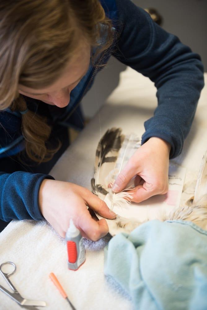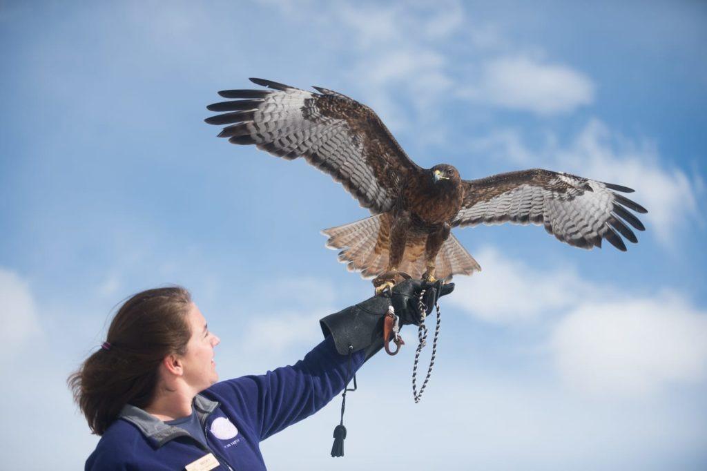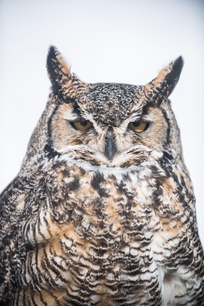 This magnificence doesn’t really wear off, either, says Meghan. “I never get bored working with these birds. They are the most beautiful creatures and each one is so different from the last. I feel privileged to work with them. Holding one can be intimidating, especially if it’s a big one, like an eagle, and they’re so lightweight. You can’t believe how little a great horned owl’s body really weighs, and how much is just fluffy feathers!”