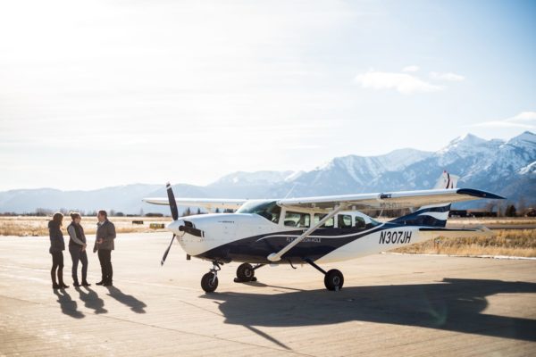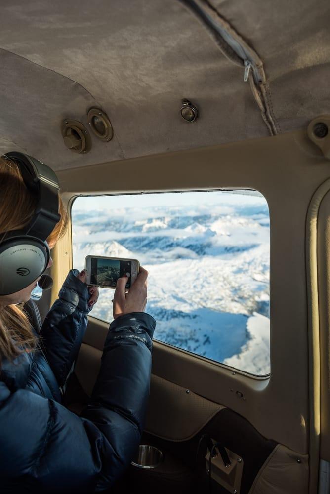 Settling into the comfort of the plane, we were glad to abandon the chilly breeze on the Jackson Hole Airport tarmac for the warmth of the climate-controlled cabin. There is no such thing as a bad seat on the plane; each one has a window and great view. Smooth tunes from the onboard XM radio greeted us as we slipped on our noise-canceling headphones, and chatted with excitement while Peter readied the plane for takeoff.