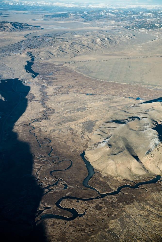 Peter steered us westward, and we peered down at the town of Jackson, pointing out spots we recognized. To the north, Flat Creek twisted through the grasses of the Elk Refuge. Silently, I noted the pools that I knew held some of the biggest cutthroat trout. Familiar waterways from above resembled a living map, inviting memories of summer days of casting flies and peaceful floats through the wild.