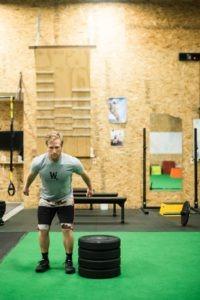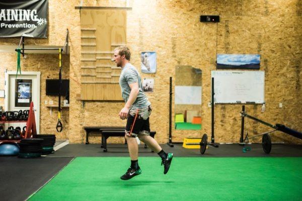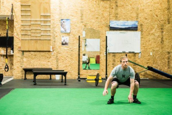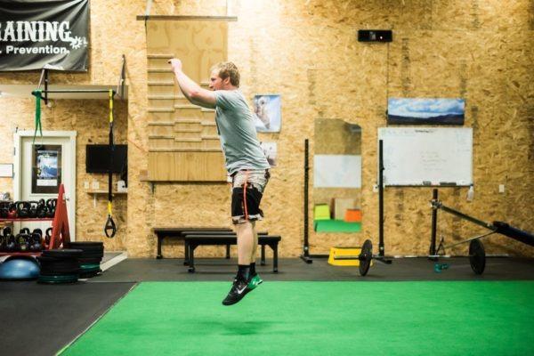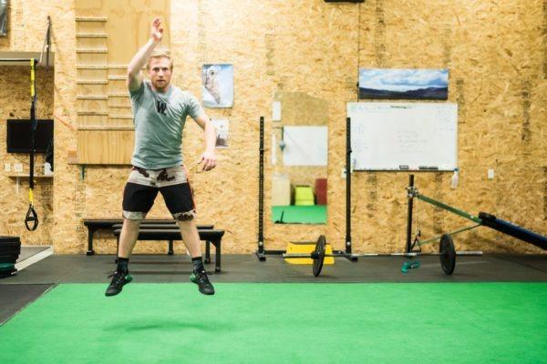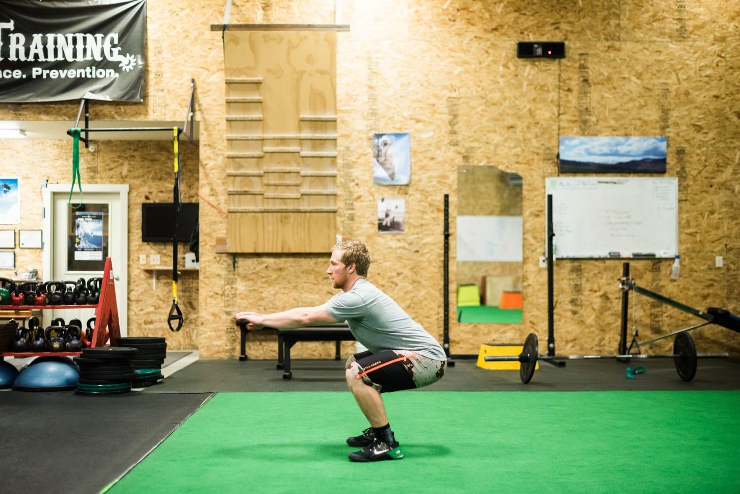 A ski fitness class at Wright Training is comprehensive and created specifically to progress the individual over time, but many of us have tight schedules and are looking for a quick workout for those days we just can’t quite squeeze in an hour-long class. Crystal and trainer Max Martin break down a circuit specifically designed to simulate skiing from the top to bottom of Rendezvous Mountain. When skiing a Tram lap, you will likely encounter tougher terrain such as moguls, tree skiing, and off piste features, as well as easier groomed terrain, and maybe have a couple of short breaks. This circuit stimulates all of these real life experiences and can be done in any gym or even at home, substituting equipment such as the box and plate for items you might already have.