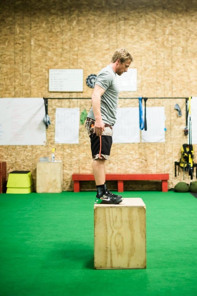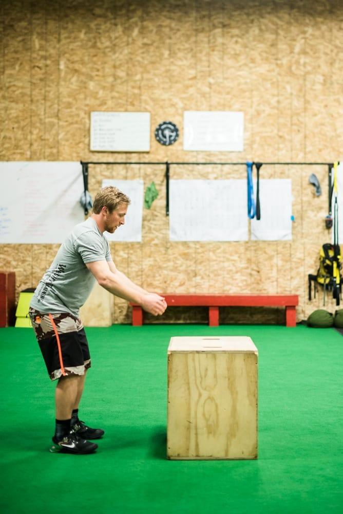 Practice good form by standing in an athletic position, with your feet shoulder-width apart. Come into a quarter squat, bend your knees and swing your arms to propel yourself onto the top of the box, and pause momentarily on top of the box to avoid injury. If you are feeling fatigued and barely making it onto the box, take a moment to reset in between jumps.