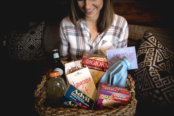 The last work assignment of the year involves a little forecasting: styling and delivering a hangover kit to one of our owners.