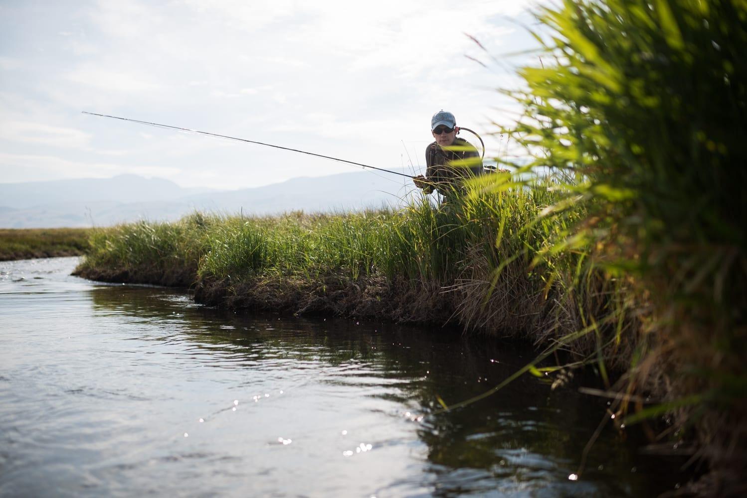 Just because Flat Creek is easy to get to doesn’t mean it’s easy to fish. In fact, it ranks among the area’s most technical fisheries, and many anglers have spent picturesque hours casting away, only to trudge back to their trucks without having landed a single trout. A variety of factors come together to make this waterway a challenge, but among the most significant is the fish themselves. Lying unperturbed by anything besides passing coyotes, elk or osprey, the cutthroat trout of Flat Creek are notoriously easy to spook. A heavy footfall, an accidental splash or slip from a rock is enough to scatter a honeyhole’s inhabitants. And once frightened, it is difficult to coax them back into eating.
