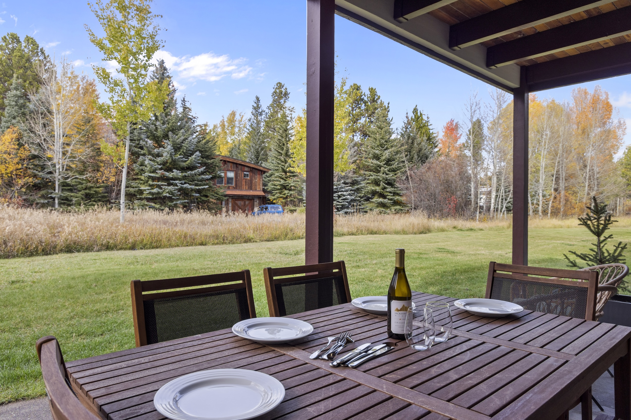 Tucked beneath a canopy of aspen trees and framed by peek-a-boo views of the majestic Teton Mountains, this peaceful retreat seamlessly blends nature and convenience. A short five-minute stroll brings you to Aspens Market, Persephone Café, Sudachi Sushi, and charming local boutiques. In just ten minutes, you can be skiing, dining, or shopping at Teton Village — or take a scenic 15-minute drive to vibrant Downtown Jackson for more of the same. Bike to both along picturesque paved paths.