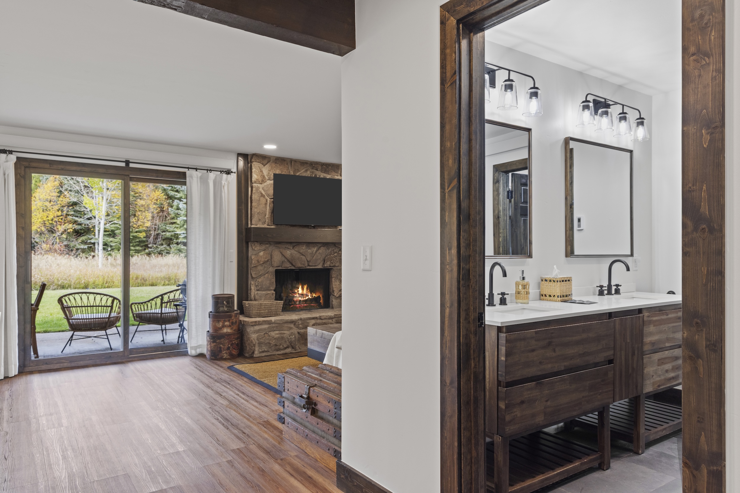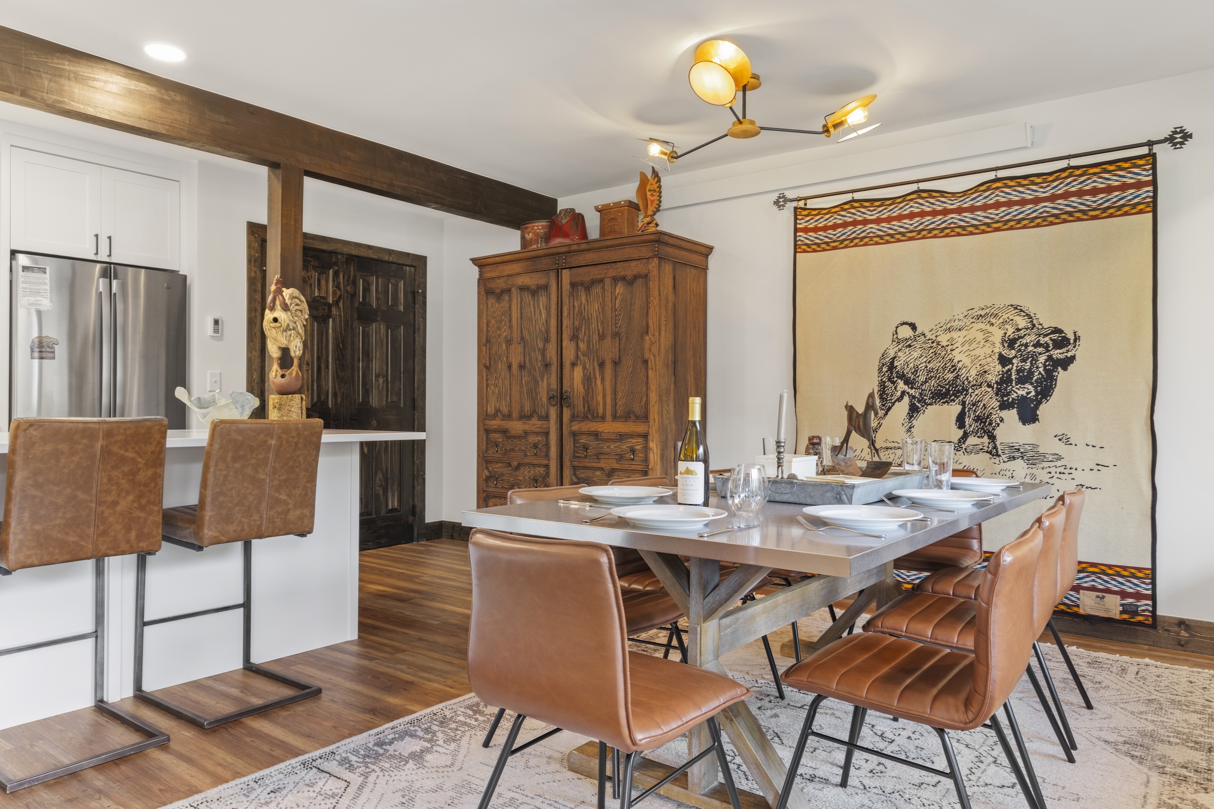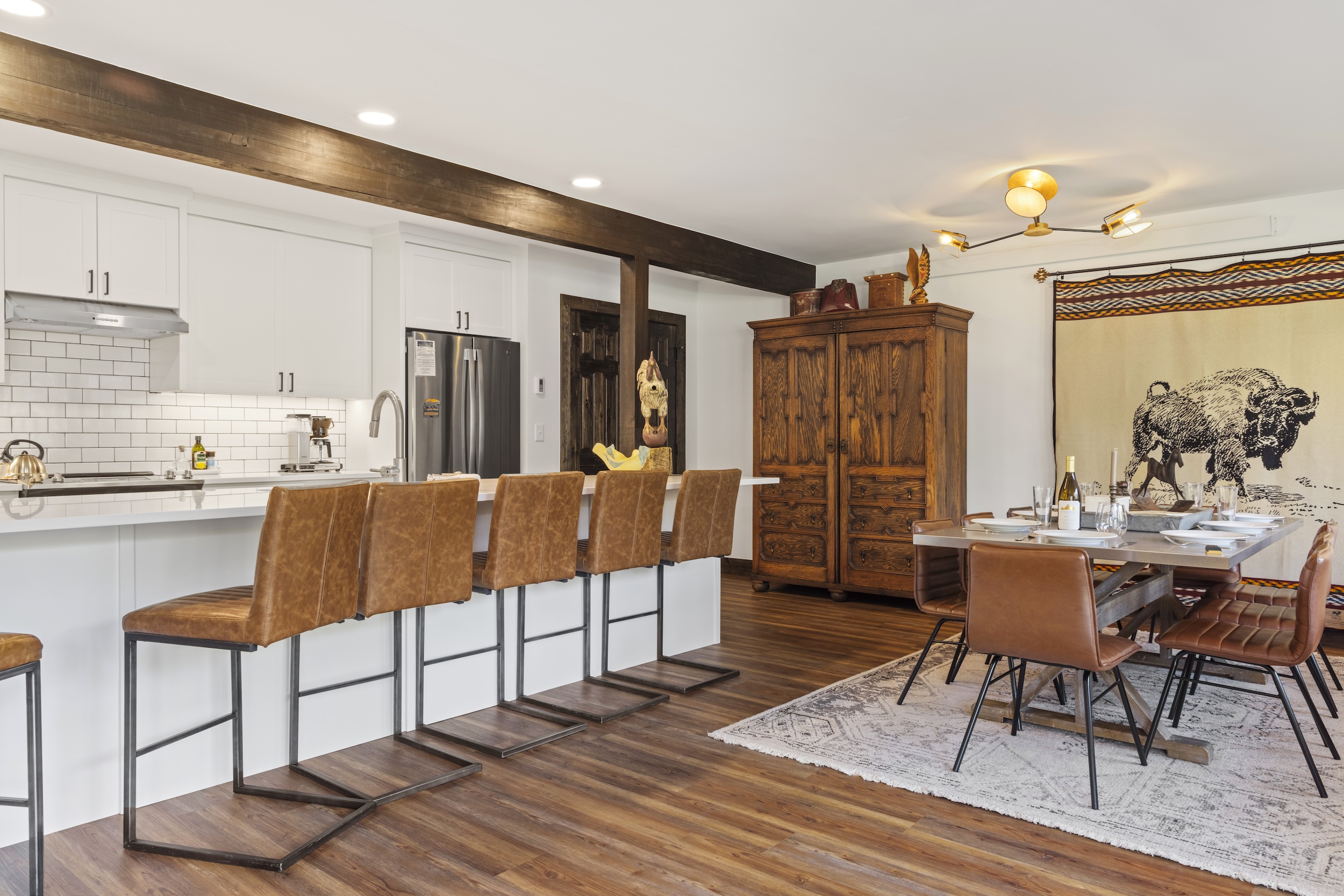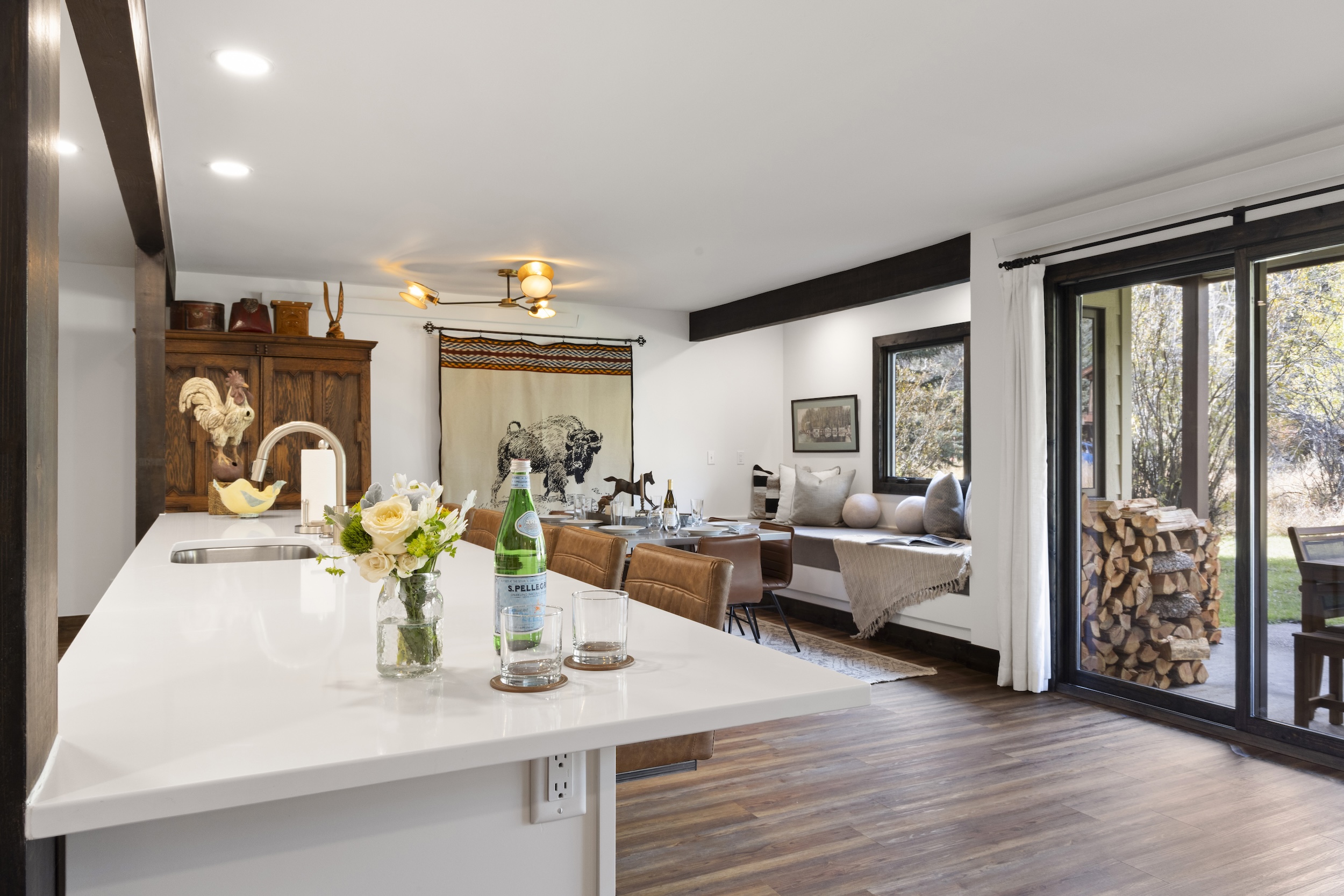 After a day of mountain adventures, unwind by the stone wood-burning fireplace — with firewood provided for your convenience. Sunlight streaming through large windows, and cozy furnishings make this home truly feel like a home away from home. Every detail, from the curated décor to the soft throws, reflects the spirit of Jackson Hole: wild, welcoming, and wonderfully serene.