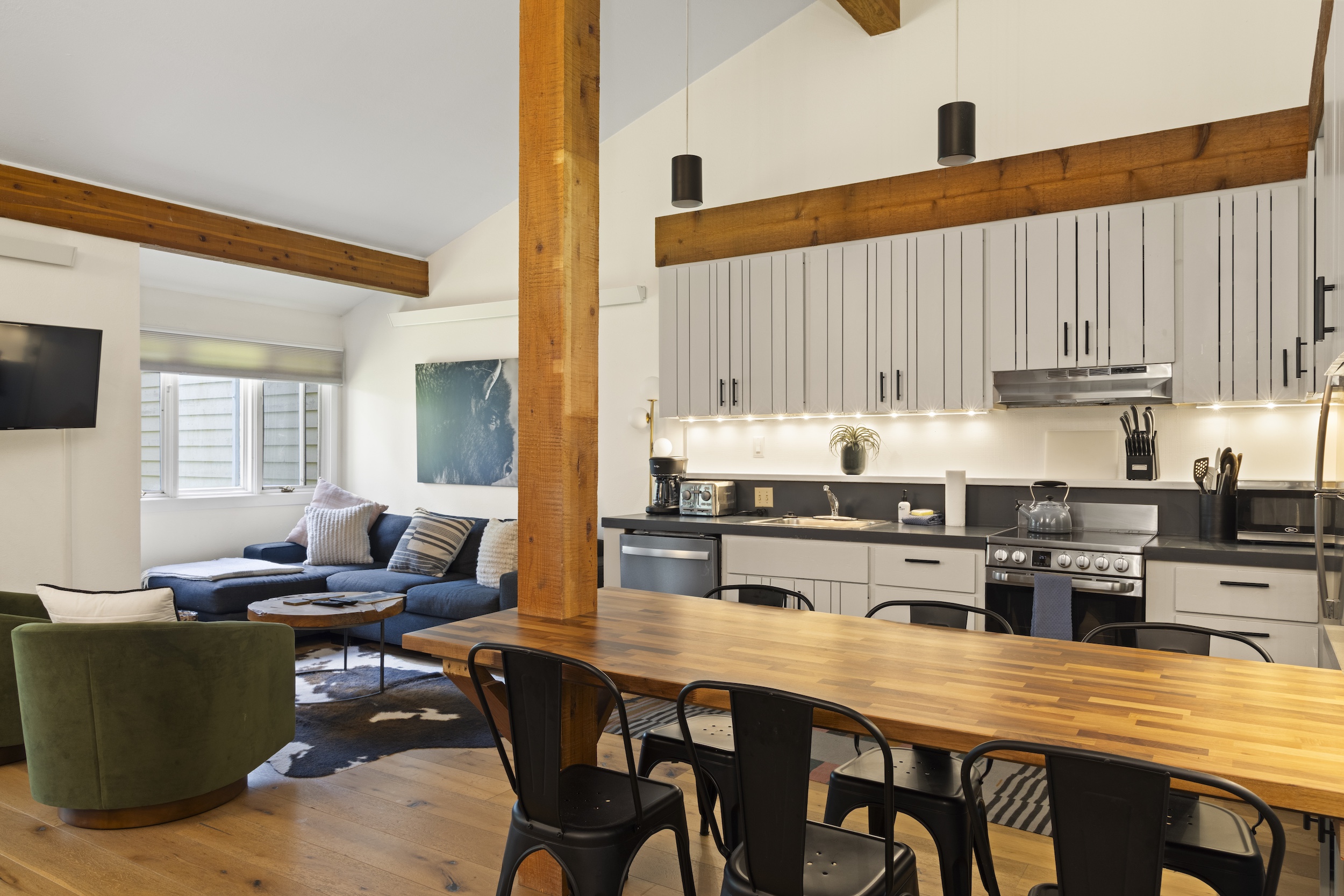 Walkability is exceptional as the condo is an 8-minute stroll to Persephone Bakery, and a 6 minute walk to the Aspens Market, and the START Bus —taking you to the mountain or to the town of Jackson — for easy, no-car convenience.