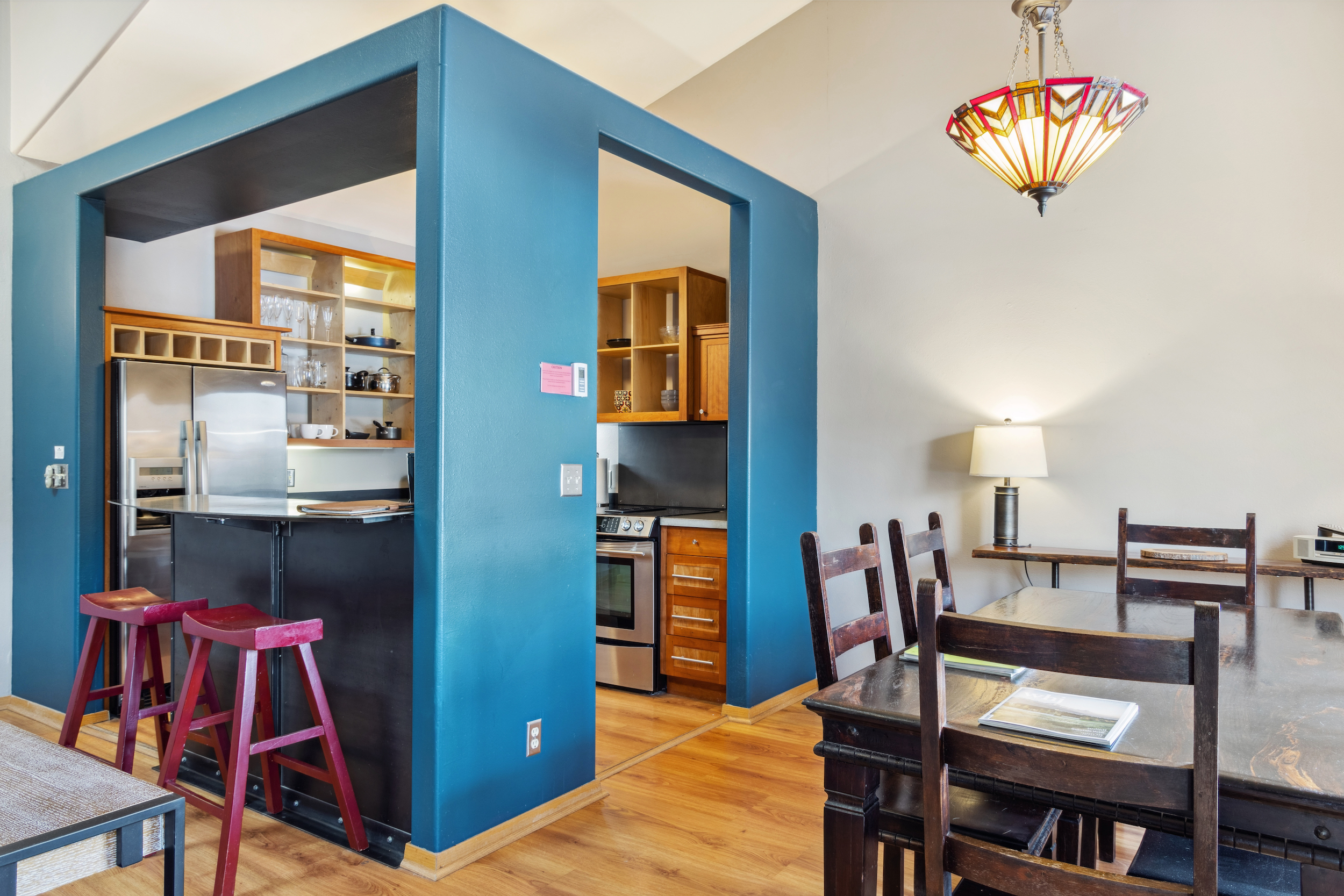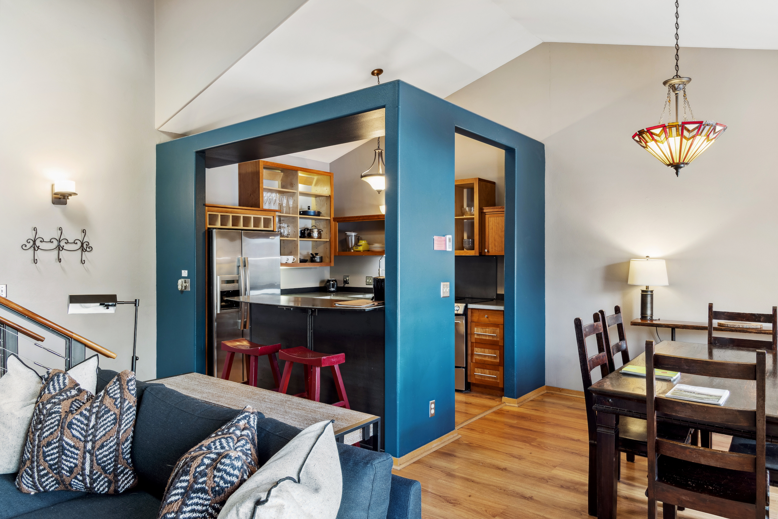 This welcoming three-bedroom, 1622 square-foot vacation rental is ideally located at the base of Snow King Mountain and walking distance to town square. There are multiple sleeping options to accommodate up to six guests at a time. With the option to enjoy summer days on the private balcony or curl up by the fire on cold winter nights, Clark’s Knoll 353 is the perfect accommodation to experience everything the town of Jackson has to offer.