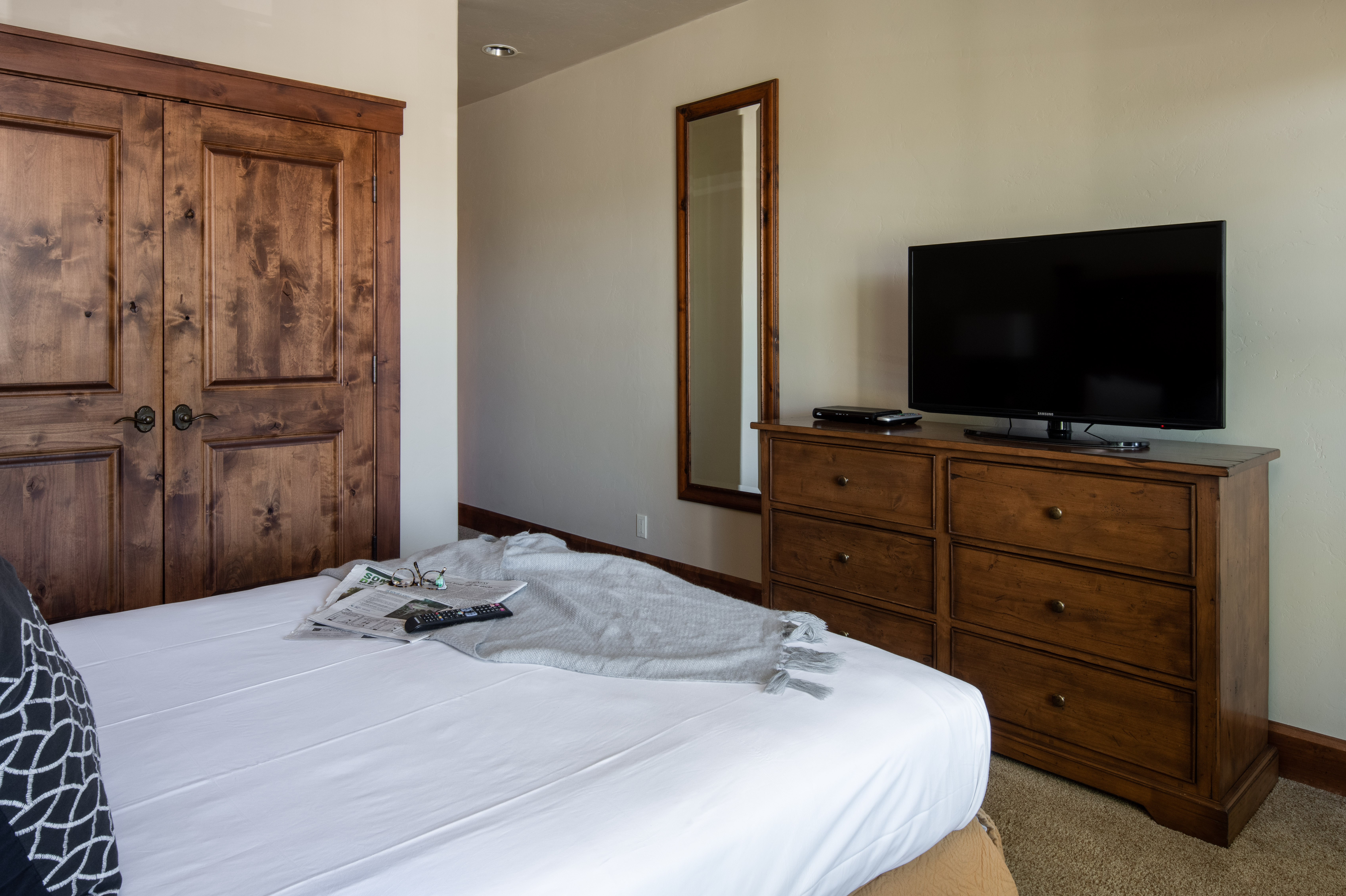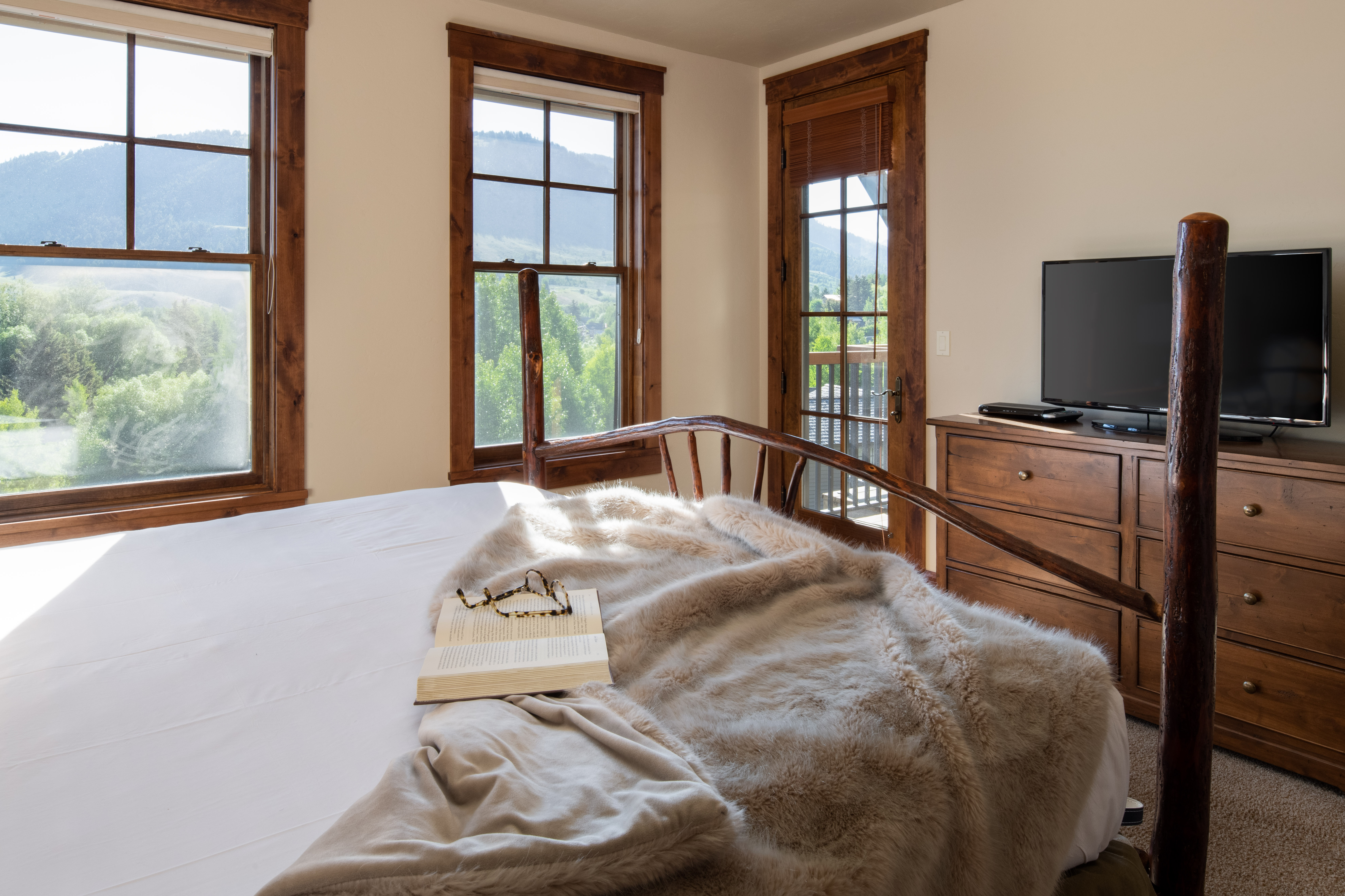 This cozy three-bedroom, three bathroom, 1776 square-foot condo is nestled conveniently at the base of Snow King Mountain and walking distance to town square. The expansive floor plan offers multiple sleeping arrangements and entertainment options making it suitable for various guests and occasions. The second living room also doubles as the murphy bed bedroom. Enjoy a lovely summer sunset from the terrace or curl up by the fireplace for some warmth and ambiance in the winter. A stylish accommodation option in a wonderful location, Grand View 2740 is the perfect outpost for your Jackson Hole vacation.