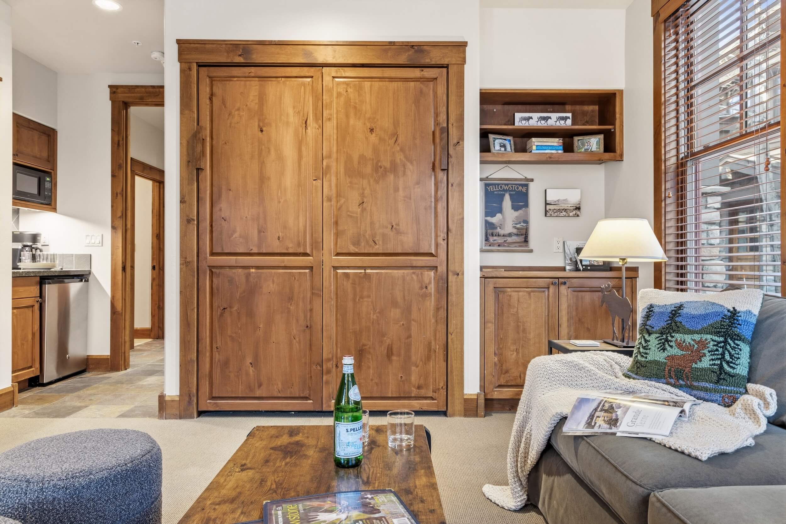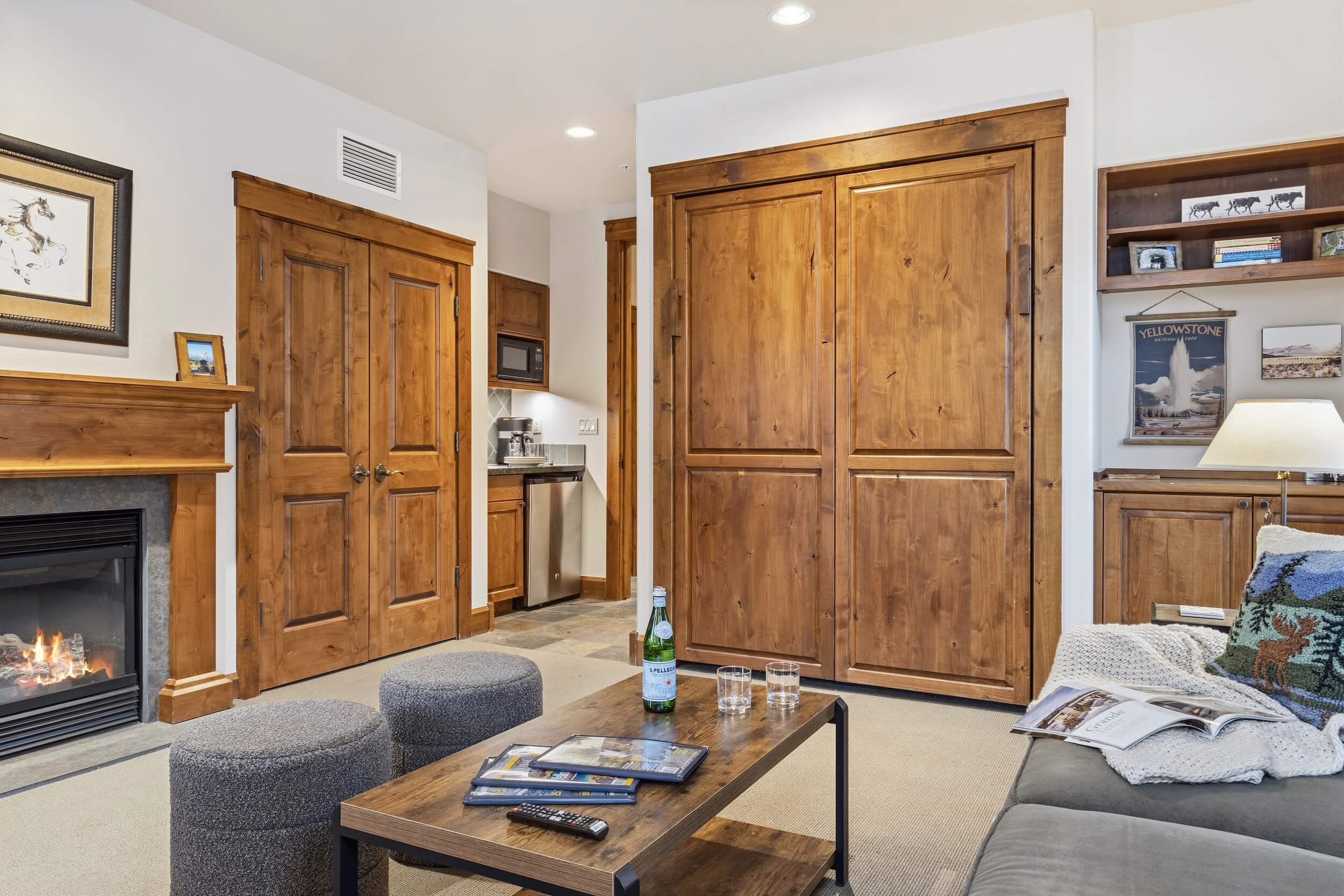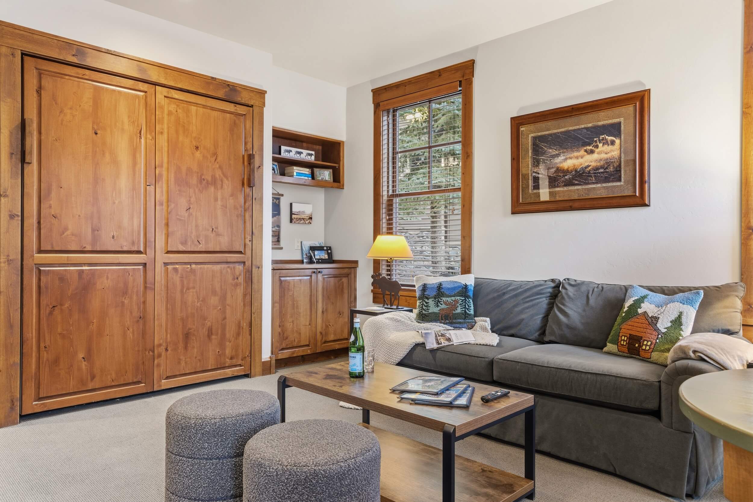 This cozy condo is located conveniently at the base of Snow King Mountain and walking distance from town square. This residence features multiple sleeping and entertainment options making it suitable for various guests and occasions. Enjoy a lovely sunset on the terrace in the summer or curl up by the fireplace in the winter. For those looking to indulge in all that Jackson Hole has to offer, Grand View 362S is the perfect home base.
