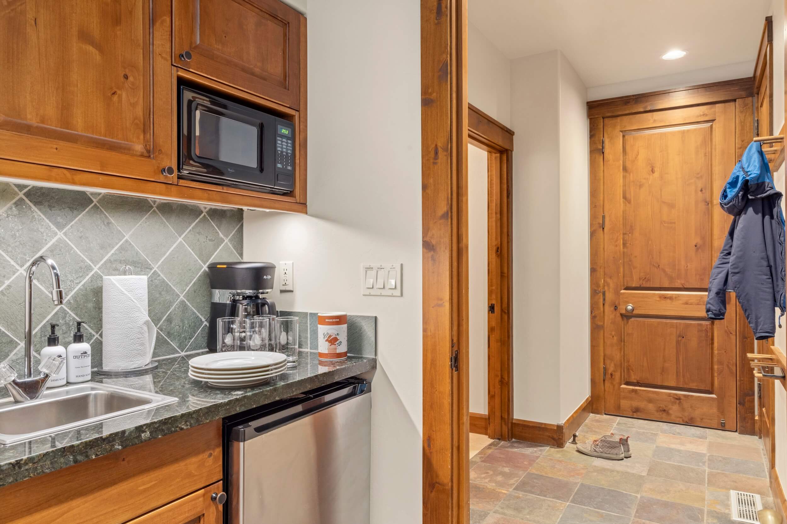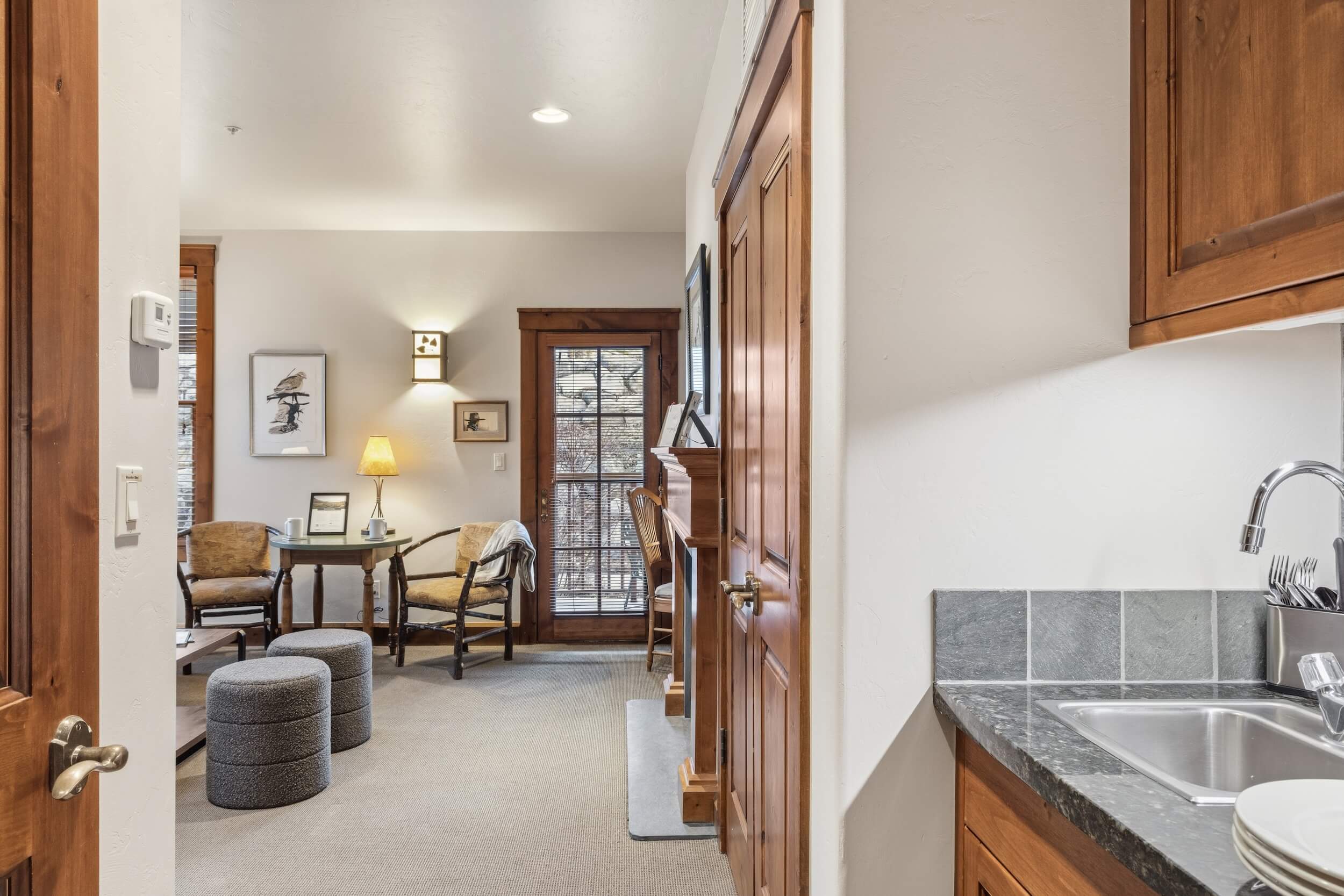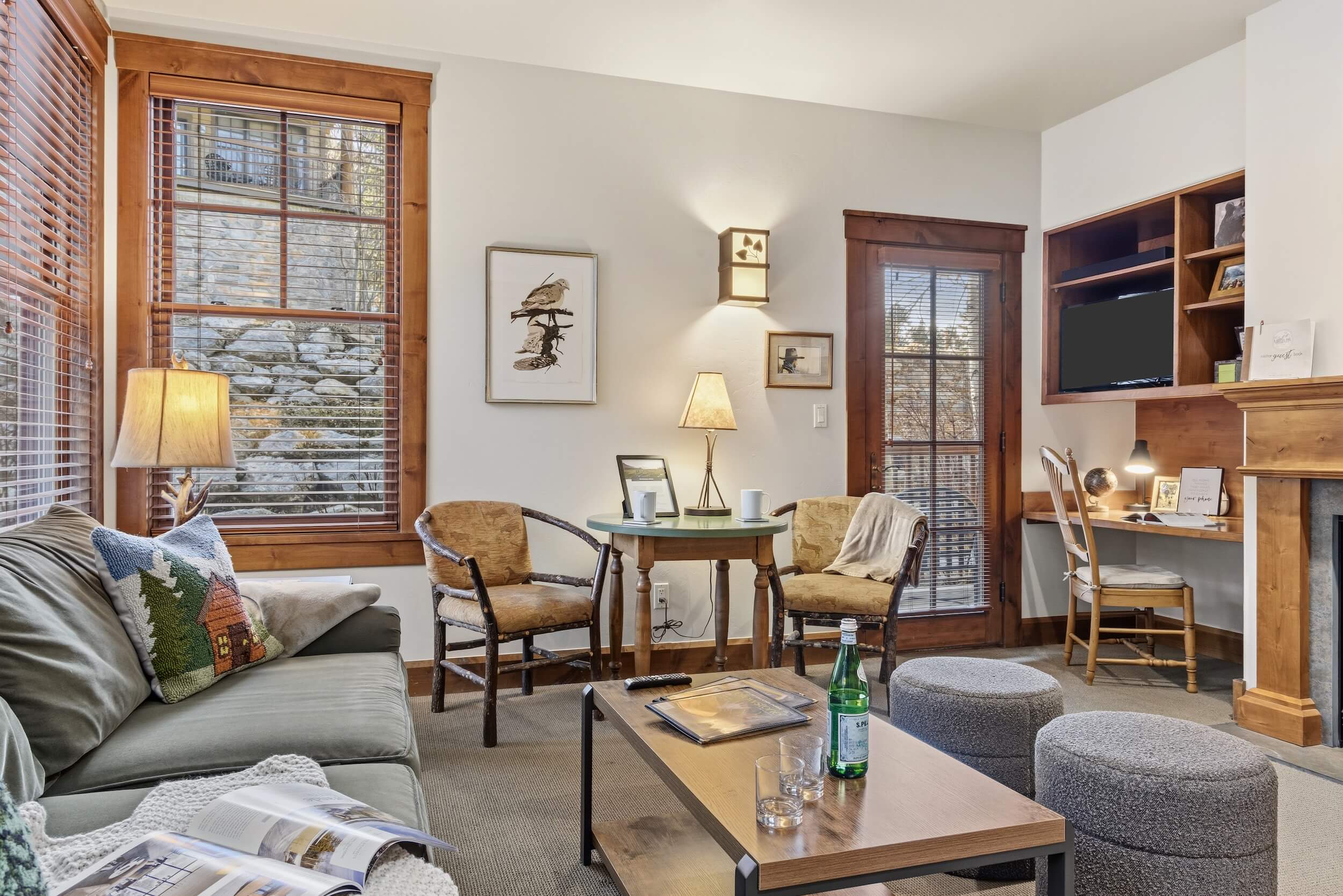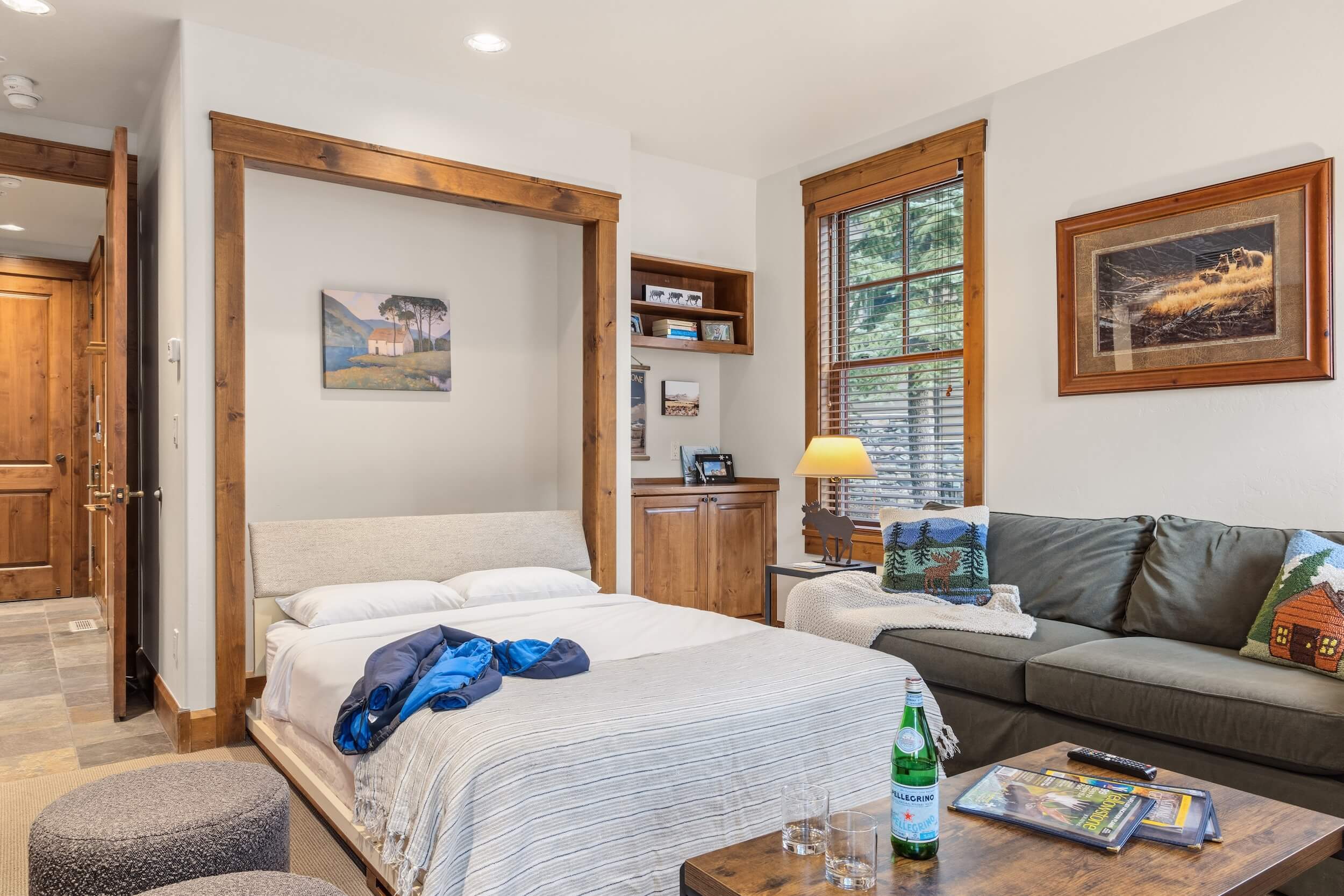 This cozy condo is located conveniently at the base of Snow King Mountain and walking distance from town square. This residence features multiple sleeping and entertainment options making it suitable for various guests and occasions. Enjoy a lovely sunset on the terrace in the summer or curl up by the fireplace in the winter. For those looking to indulge in all that Jackson Hole has to offer, Grand View 362S is the perfect home base.