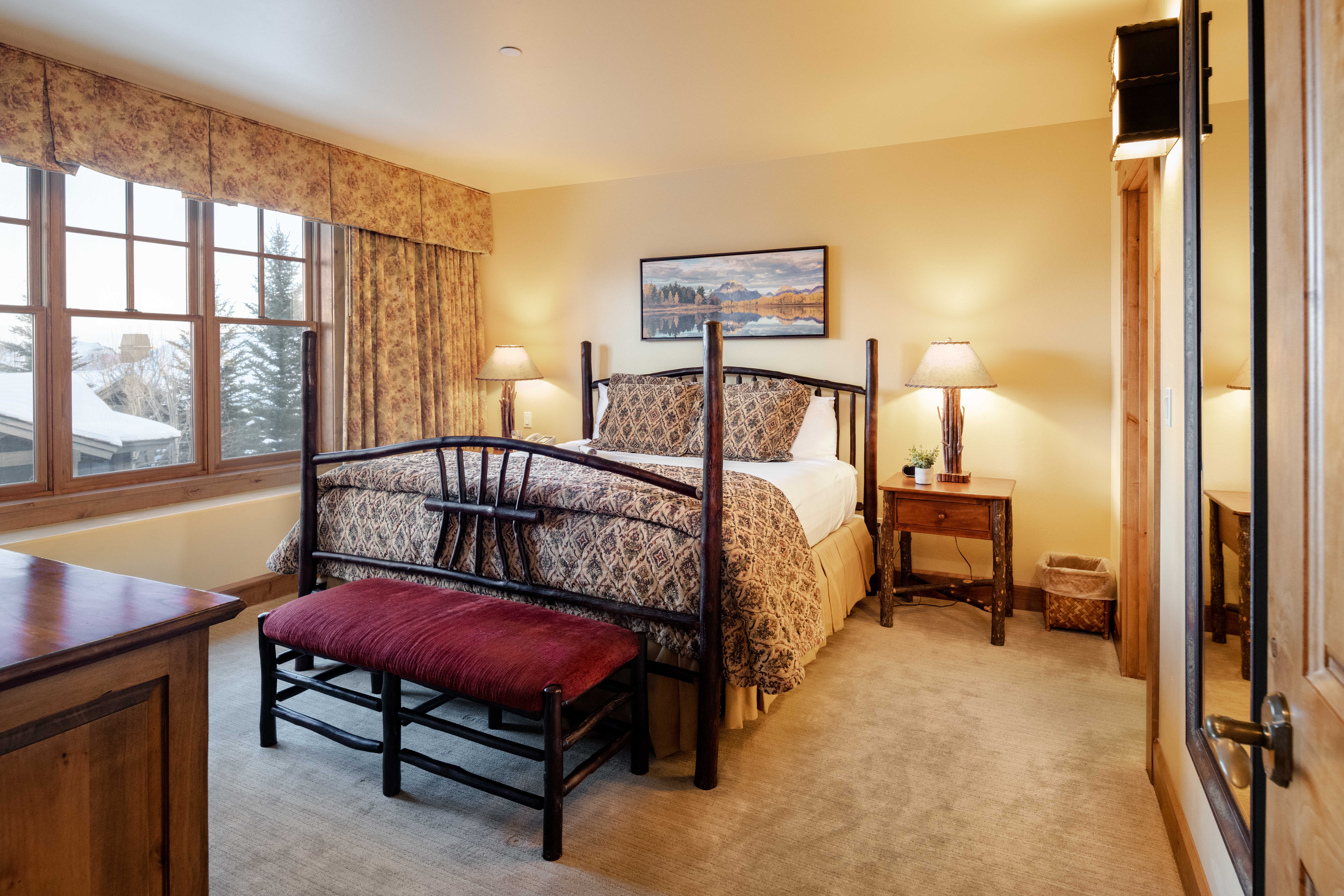 This beautiful 1 bedroom, 1.5-bath condo boasts expansive views of the Grand Tetons, Town of Jackson, and the National Elk Refuge. The unit features a primary ensuite bedroom with Teton views and access to the private deck. The spacious living room features a gas lit fireplace and is the perfect place to unwind after a long day on the slopes or hiking.