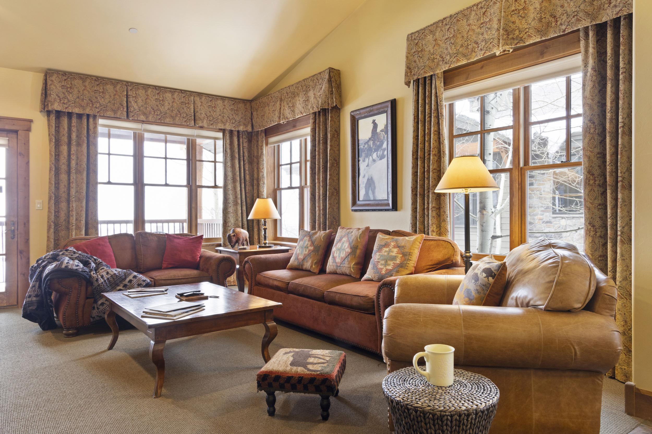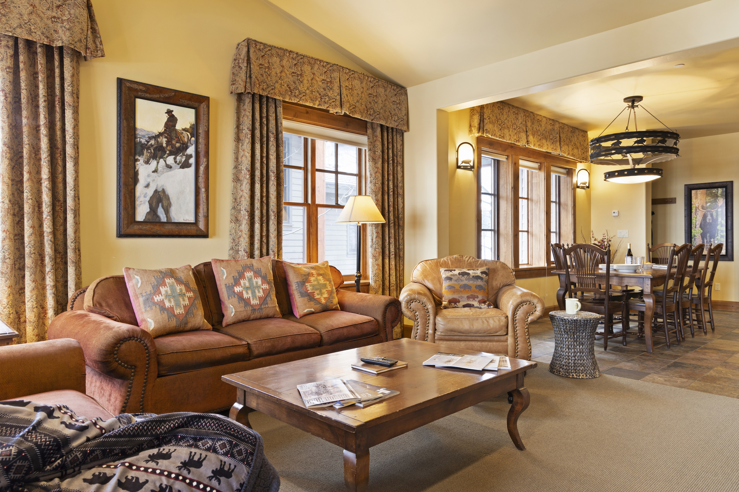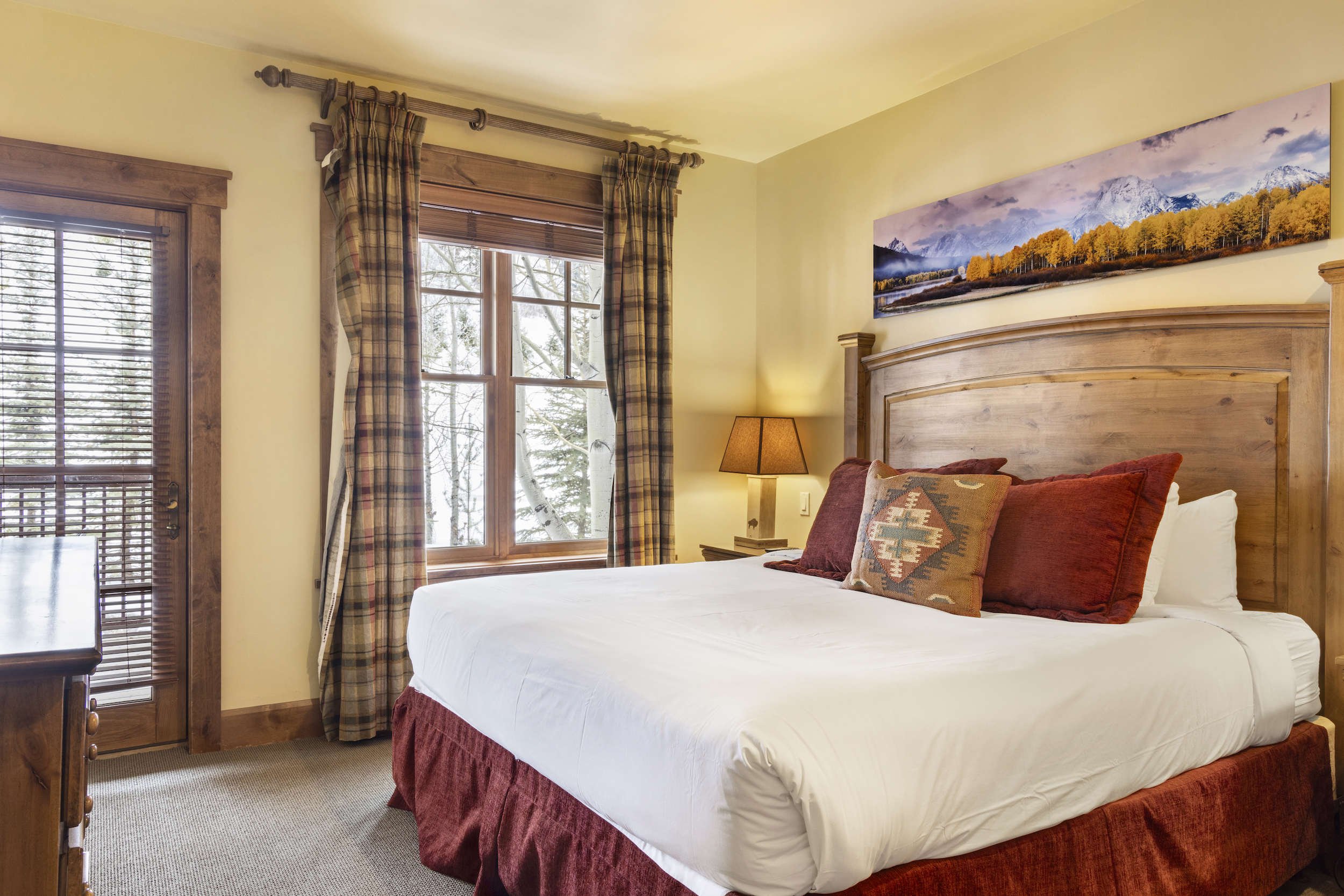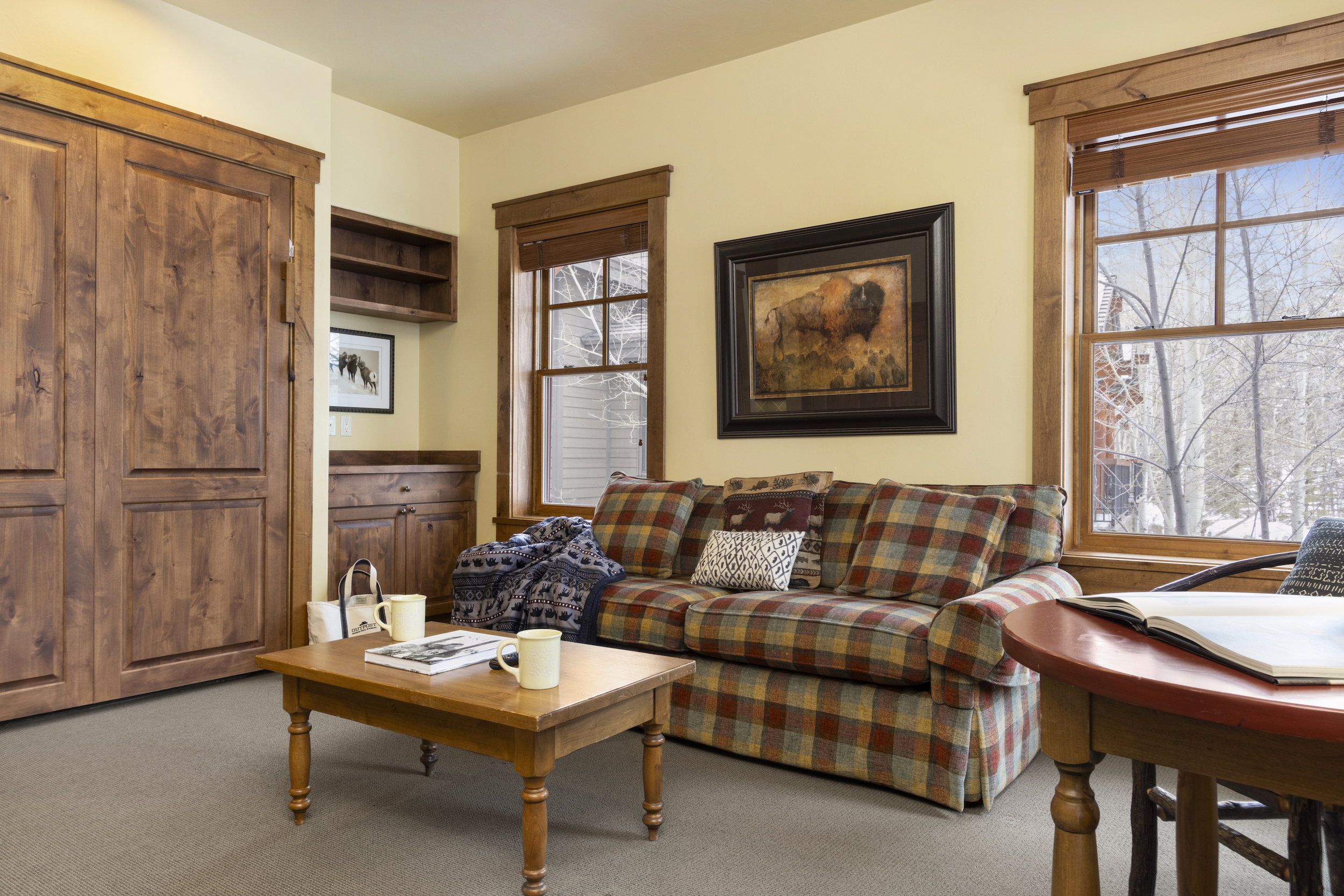 This top floor Grand View condo is nestled conveniently at the base of Snow King Mountain and walking distance to town square. The expansive, 1748 square-foot floor plan offers multiple sleeping arrangements and entertainment options making it suitable for various guests and occasions. The second living room also doubles as the murphy bed bedroom. Look out at the Tetons from the terrace or curl up by the fireplace in the winter. A cozy accommodation option in a wonderful location, Grand View 494 is the perfect outpost for your Jackson Hole vacation.
