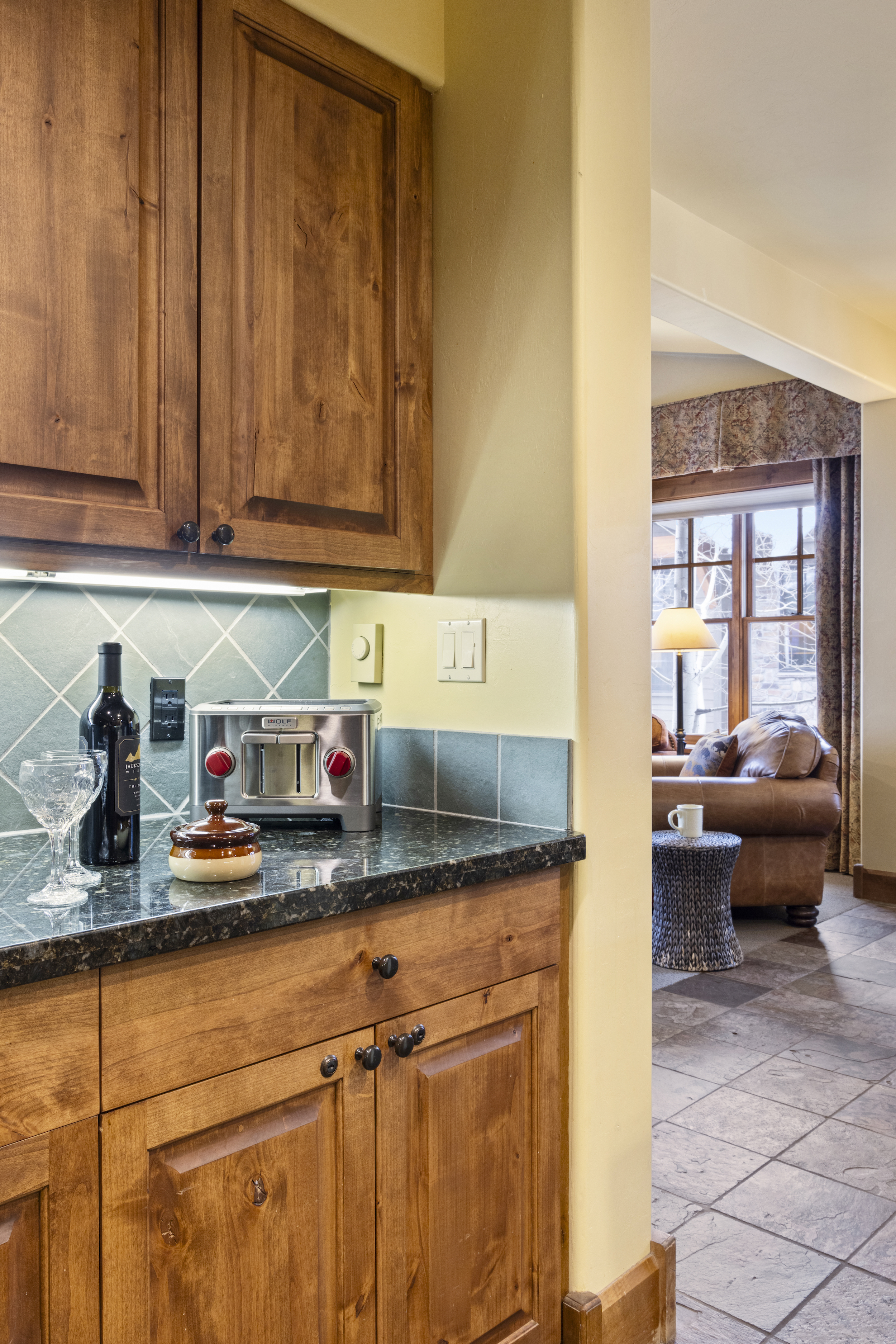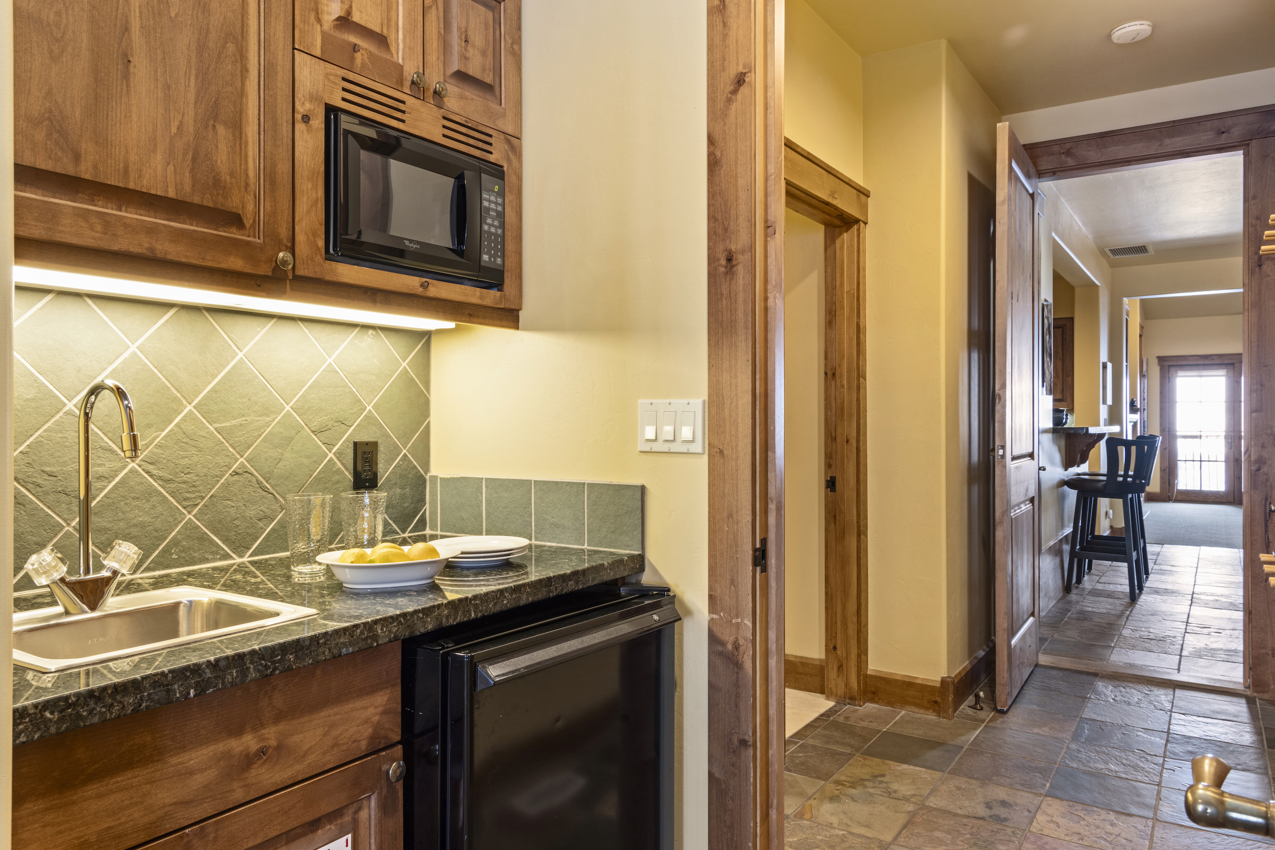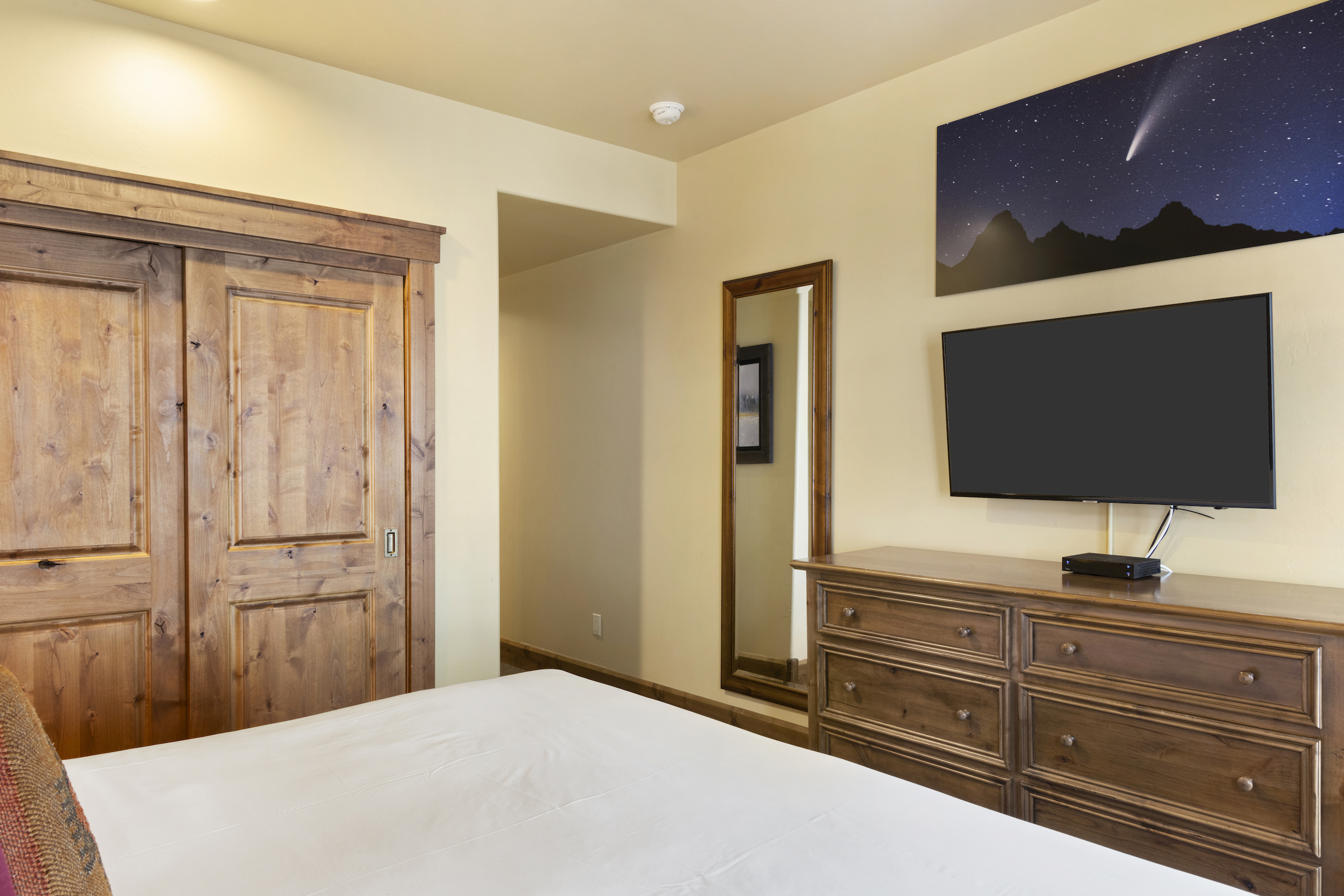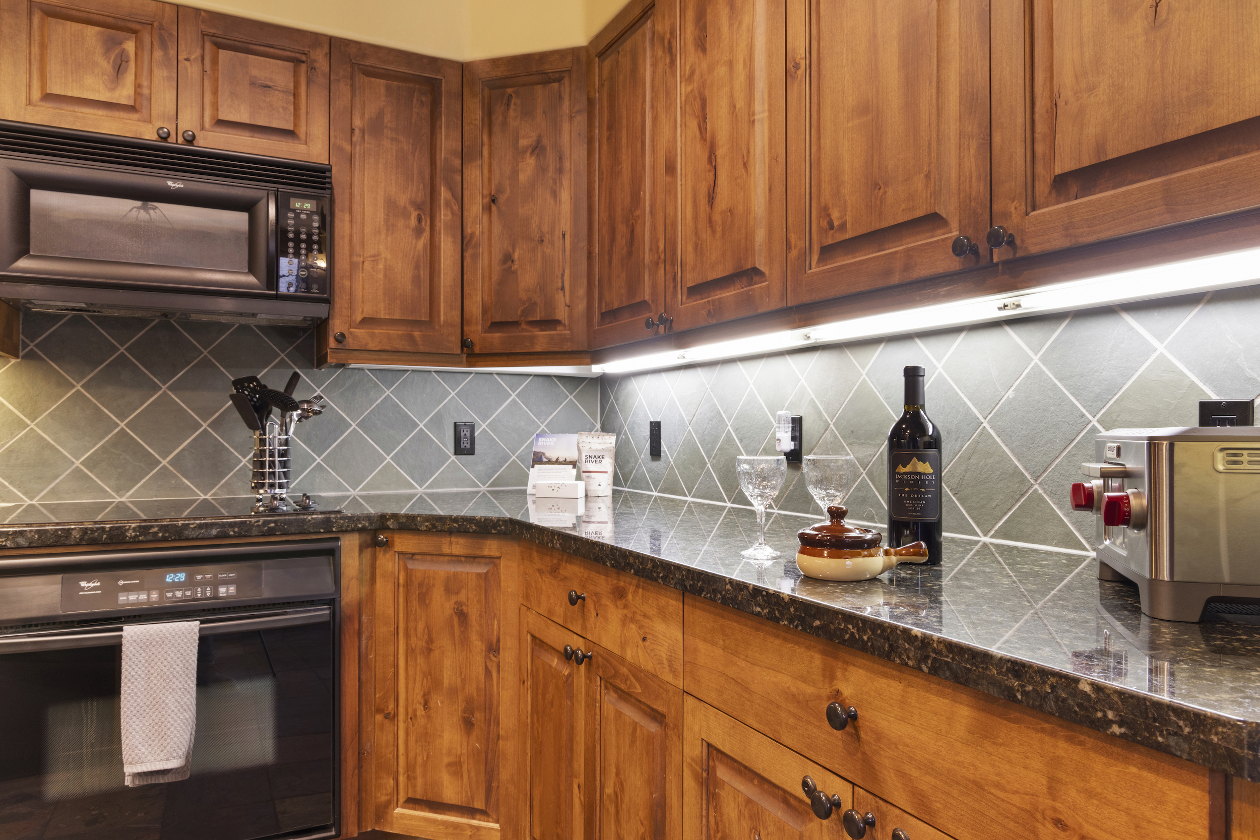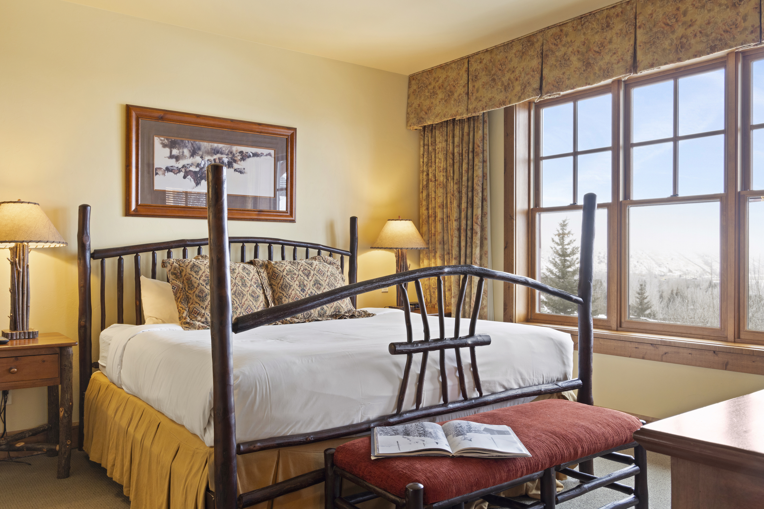 This top floor Grand View condo is nestled conveniently at the base of Snow King Mountain and walking distance to town square. The expansive, 1748 square-foot floor plan offers multiple sleeping arrangements and entertainment options making it suitable for various guests and occasions. The second living room also doubles as the murphy bed bedroom. Look out at the Tetons from the terrace or curl up by the fireplace in the winter. A cozy accommodation option in a wonderful location, Grand View 494 is the perfect outpost for your Jackson Hole vacation.