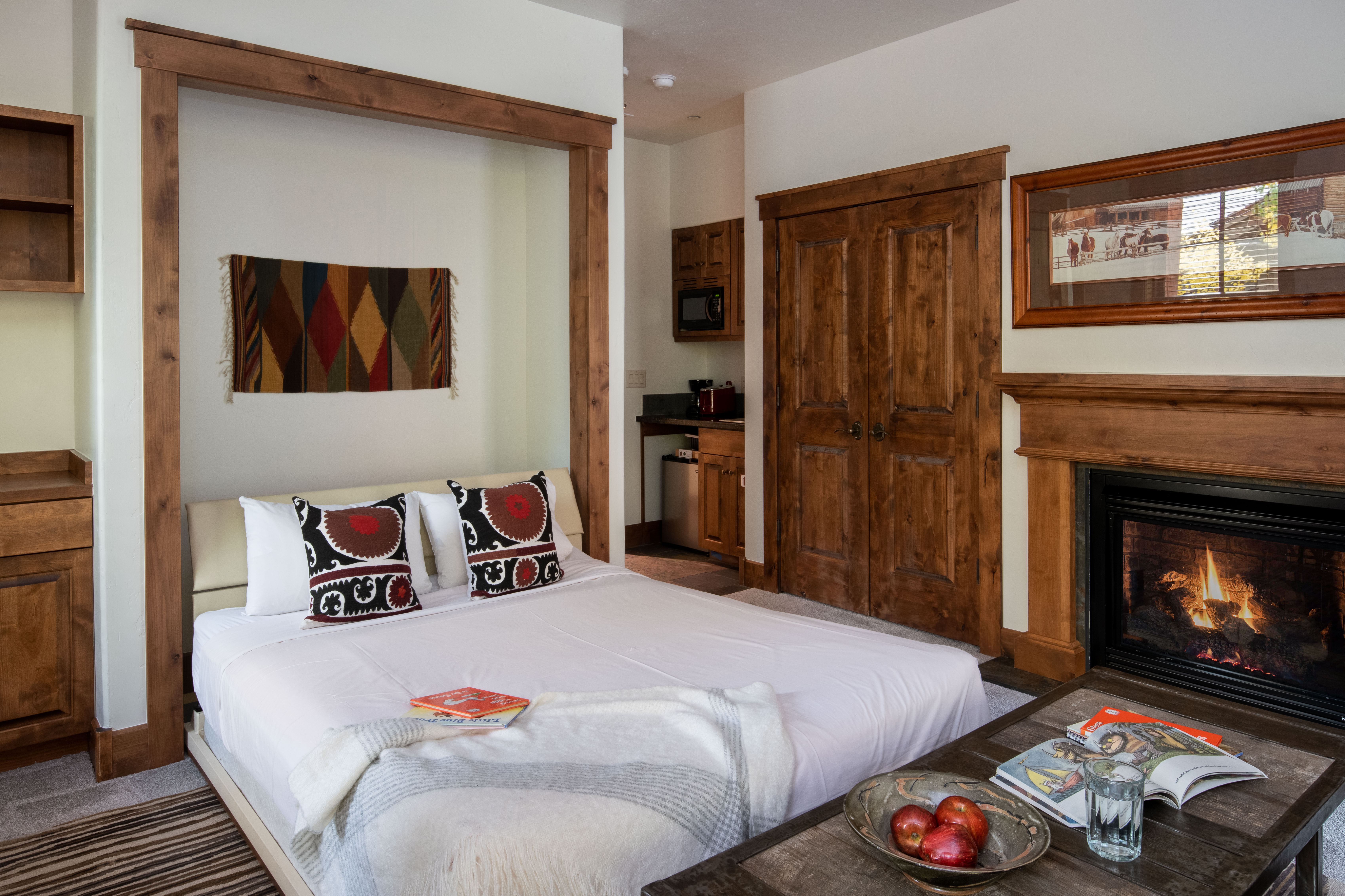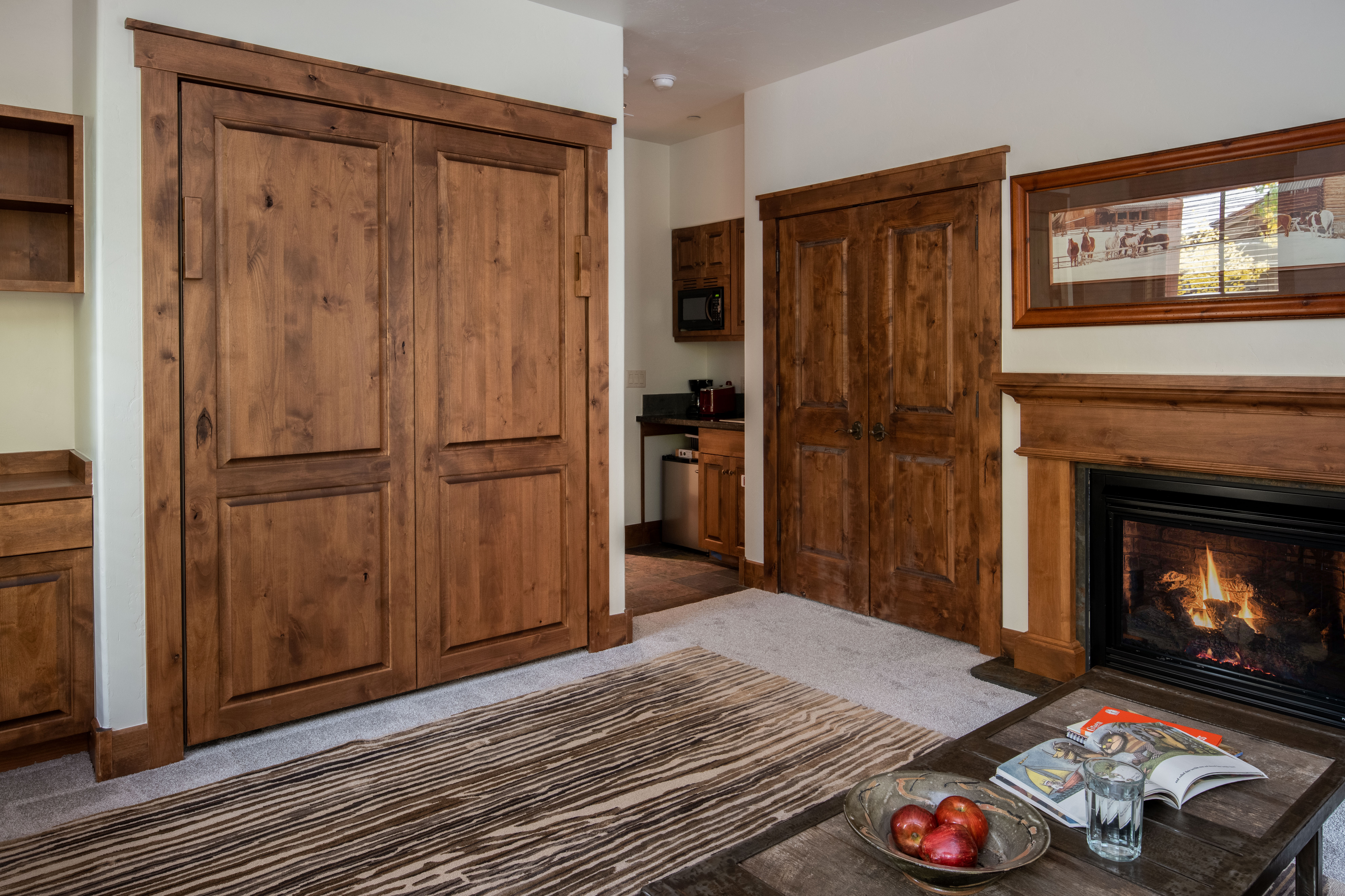 This cozy Grand View condo is nestled conveniently at the base of Snow King Mountain and walking distance to town square. The expansive, 1765 square-foot floor plan offers multiple sleeping arrangements and entertainment options making it suitable for various guests and occasions. The second living room also doubles as the murphy bed bedroom. Look out at the Tetons from the terrace or curl up by the fireplace in the winter. A lovely accommodation option in a wonderful location, Grand View 5030 is the perfect outpost for your Jackson Hole vacation.