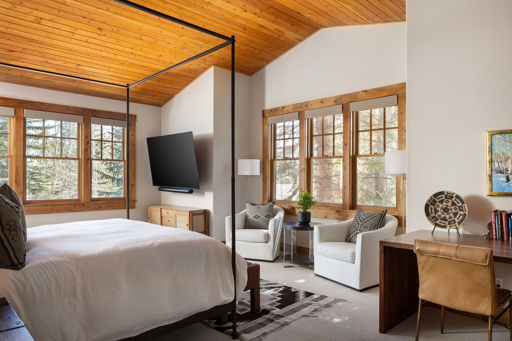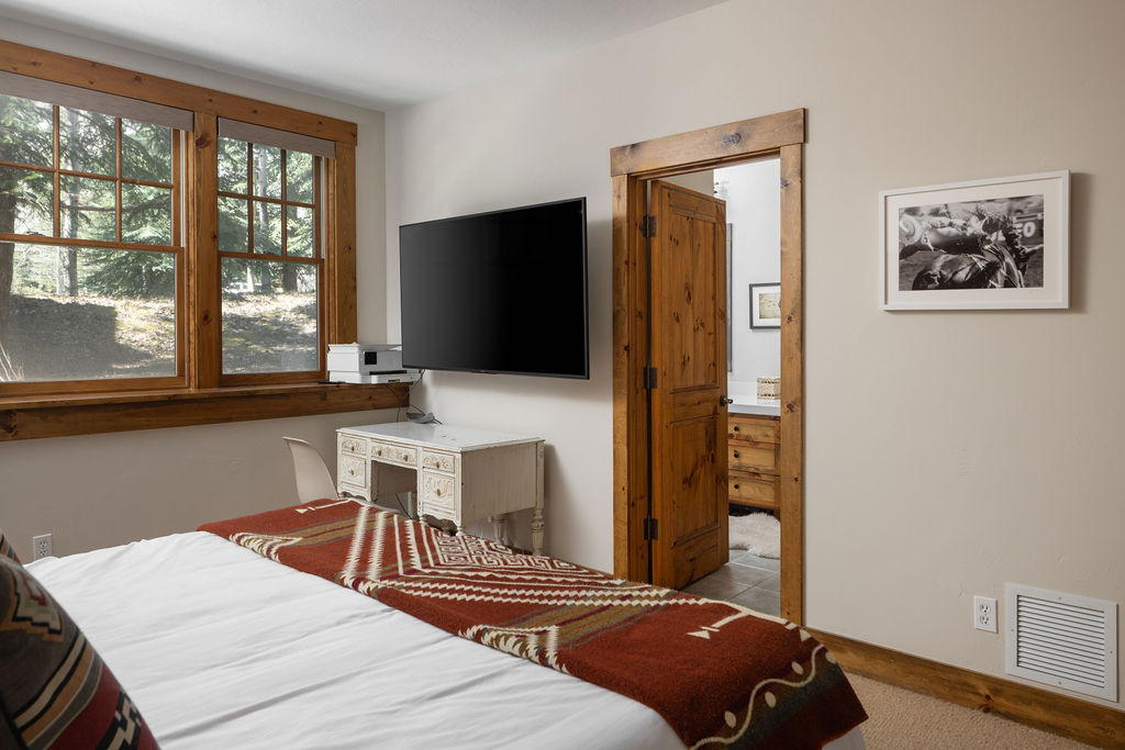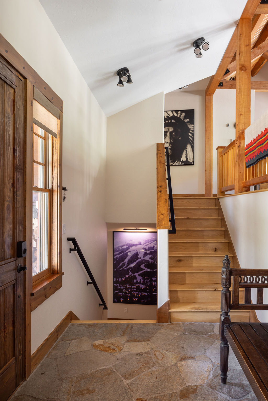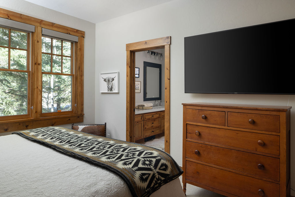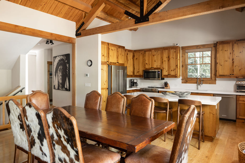 Enjoy the best of indoor-outdoor living with a spacious patio featuring ample seating and a private hot tub, ideal for relaxing after a day on the slopes or exploring nearby trails. Inside, expansive windows fill the home with natural light, highlighting the rich woodwork and warm, inviting atmosphere throughout. The living area centers around a stunning stone fireplace, creating a cozy setting for winter evenings or cool summer nights. Tucked away in a peaceful setting yet just a short walk from the heart of Teton Village, Arrowhead 3145 offers the perfect balance of privacy and convenience.