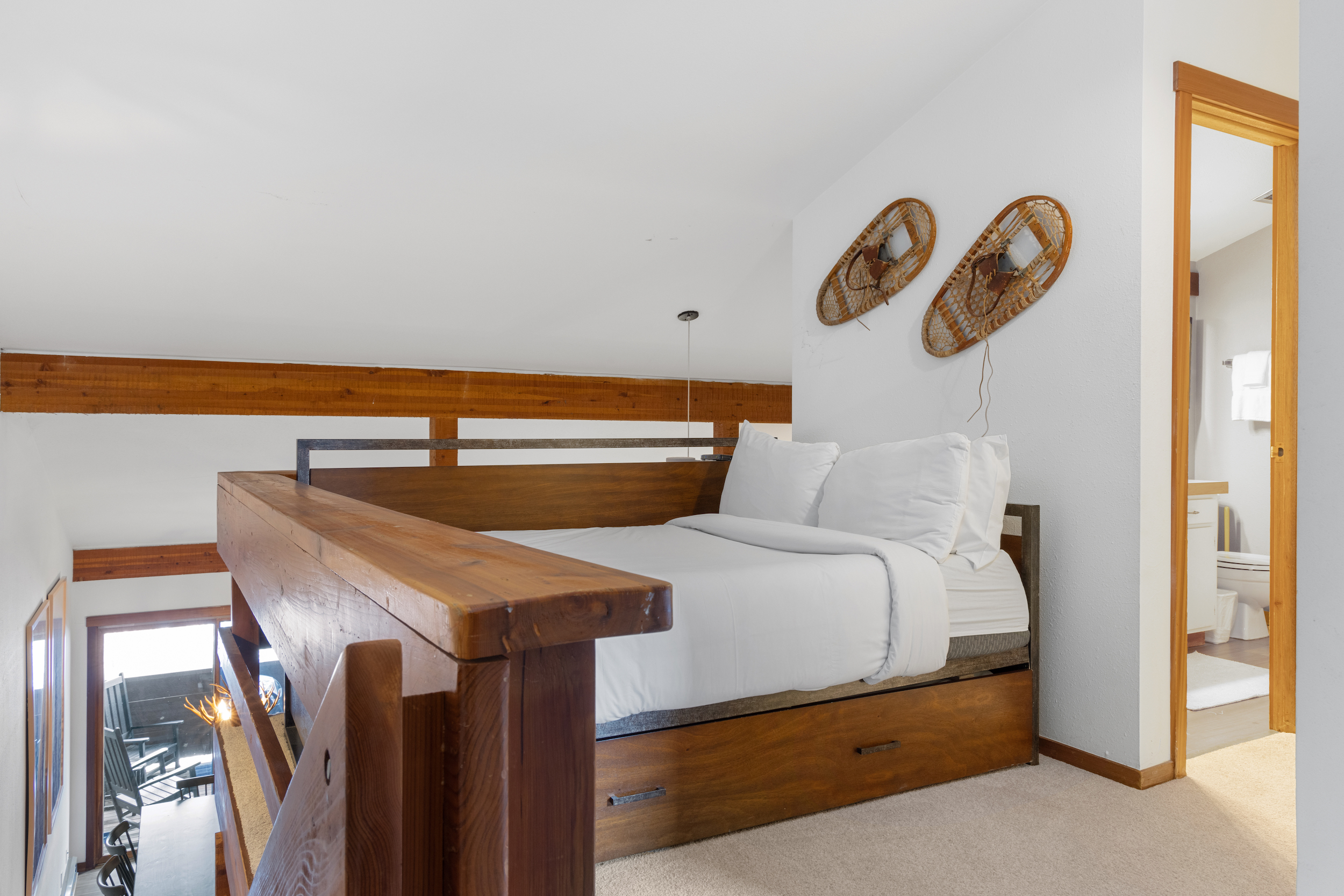 - Stairs will be required to access this unit, and will be required once inside to access the loft and guest bedroom.