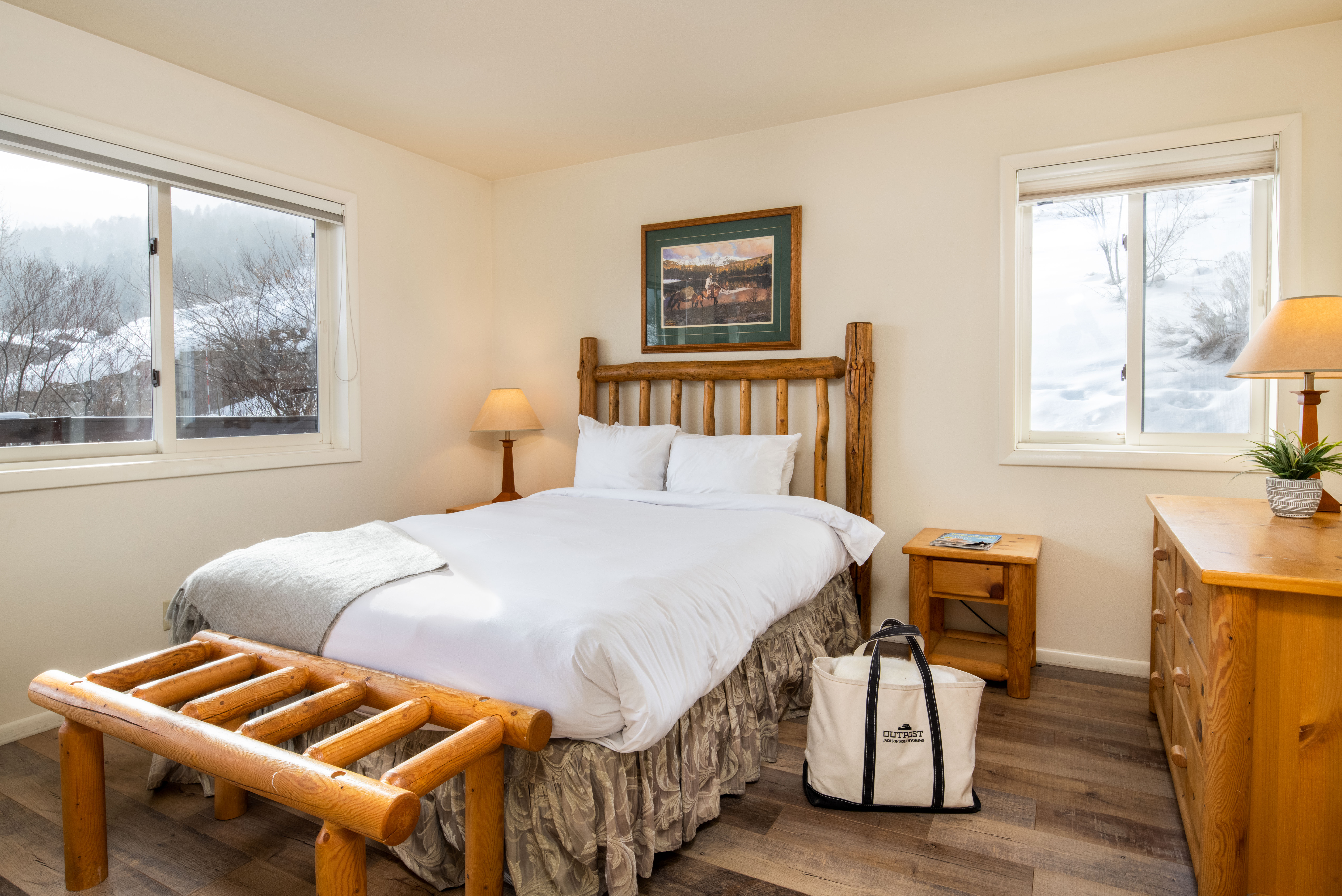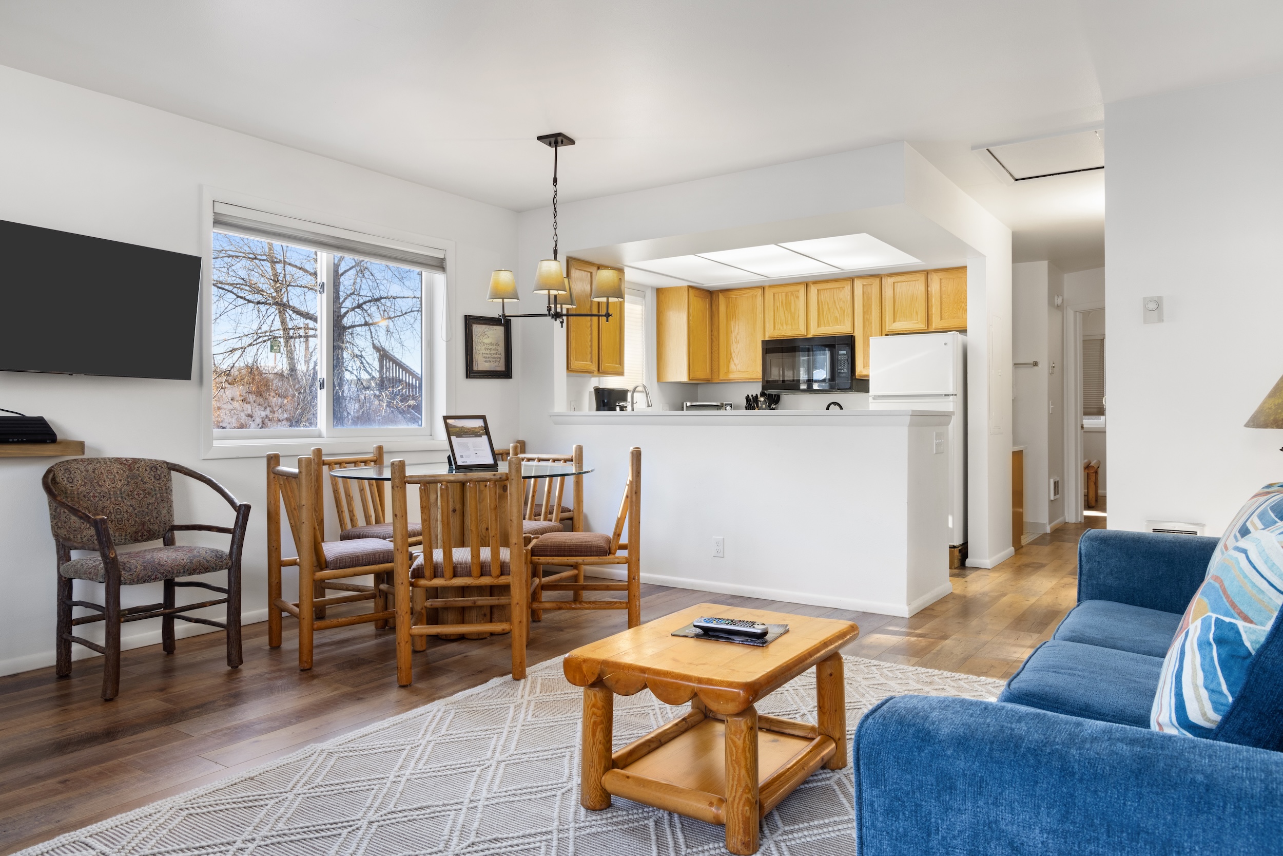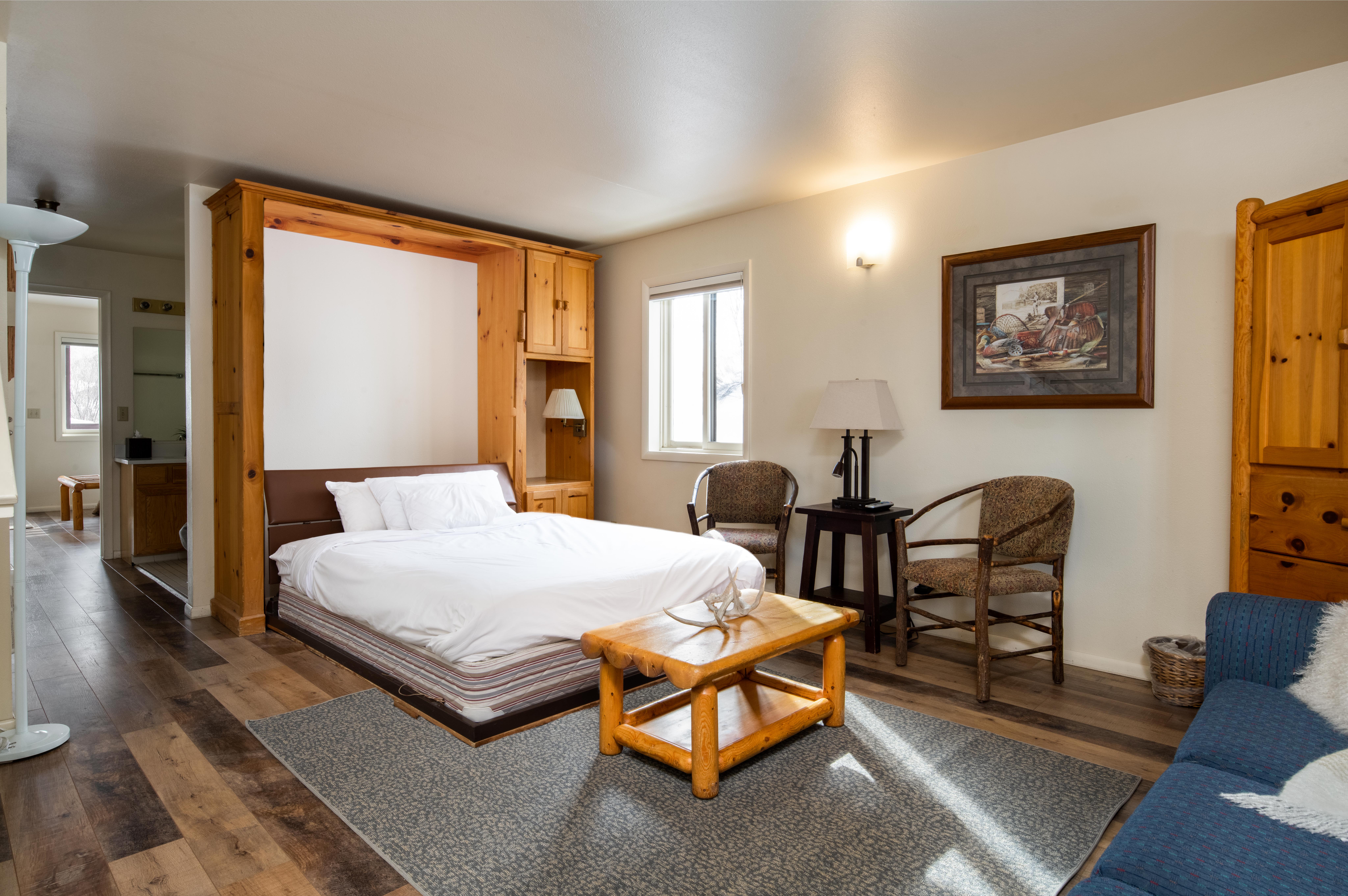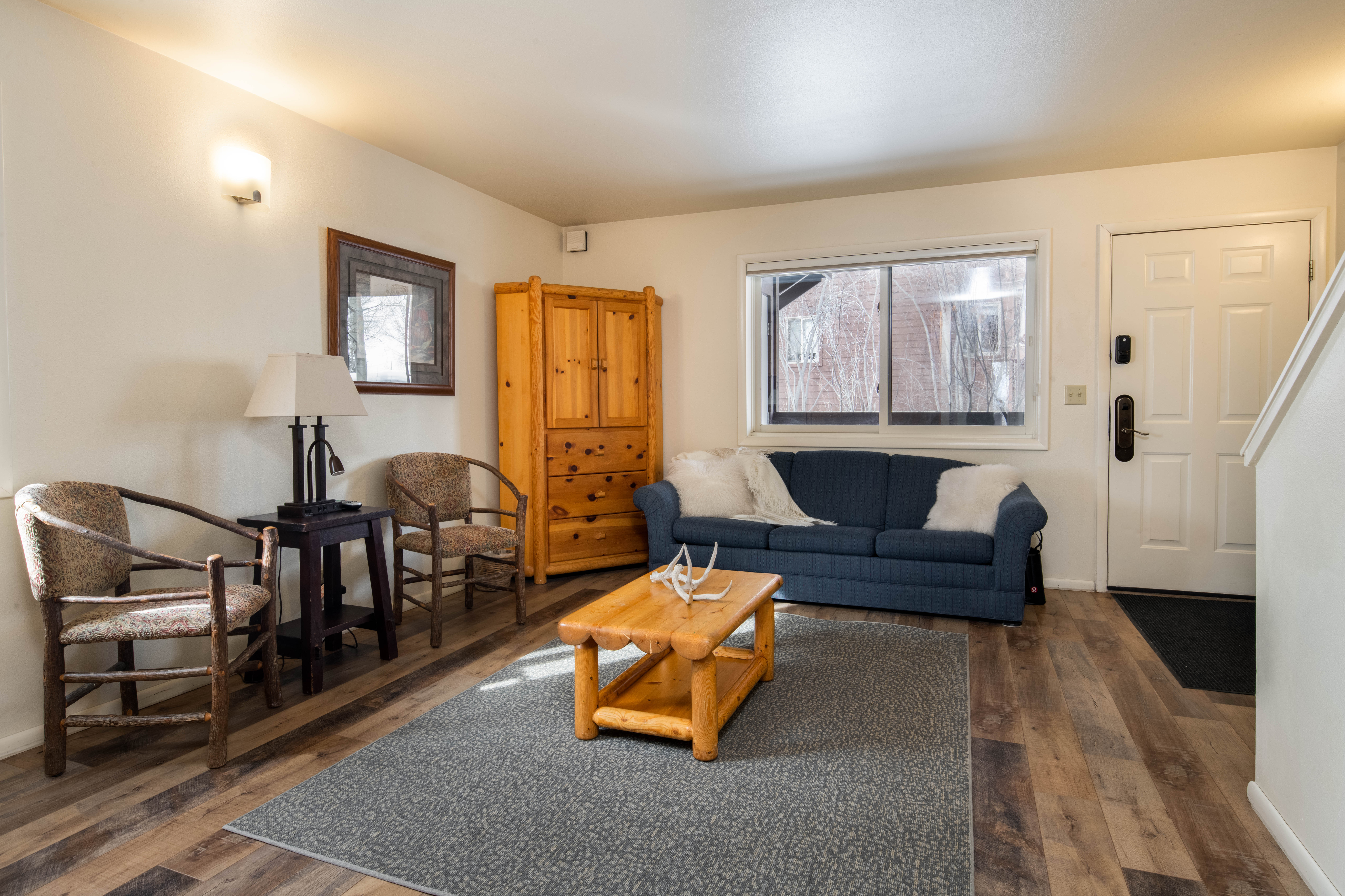 This classic two-bedroom condo is ideally located at the base of Snow King Mountain and walking distance to town square. There are multiple sleeping options to accommodate up to six guests at a time. With the option to enjoy mountain views on the terrace or curl up by the fireplace, Pitchfork 2306 is the perfect accommodation to experience everything the town of Jackson has to offer.