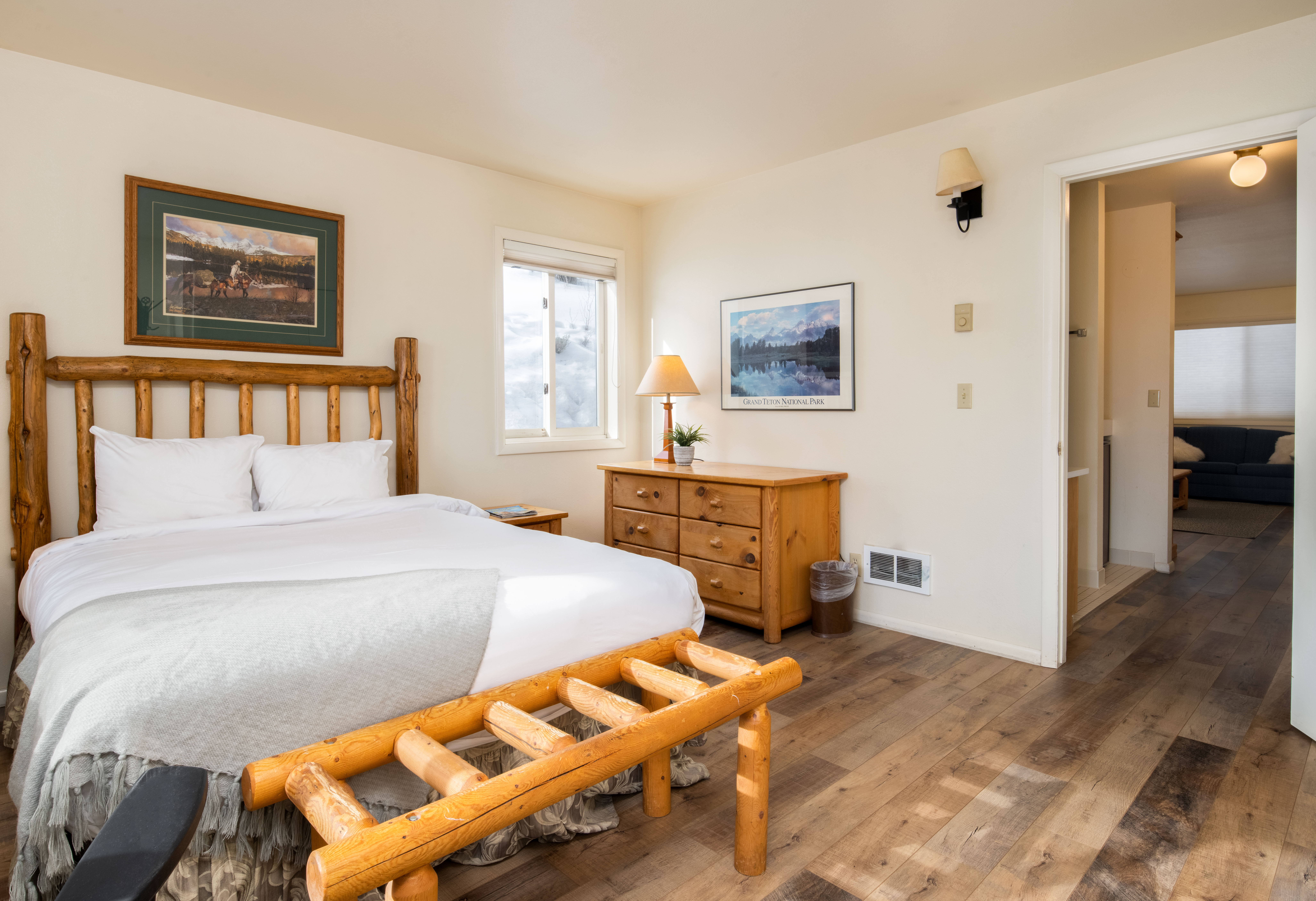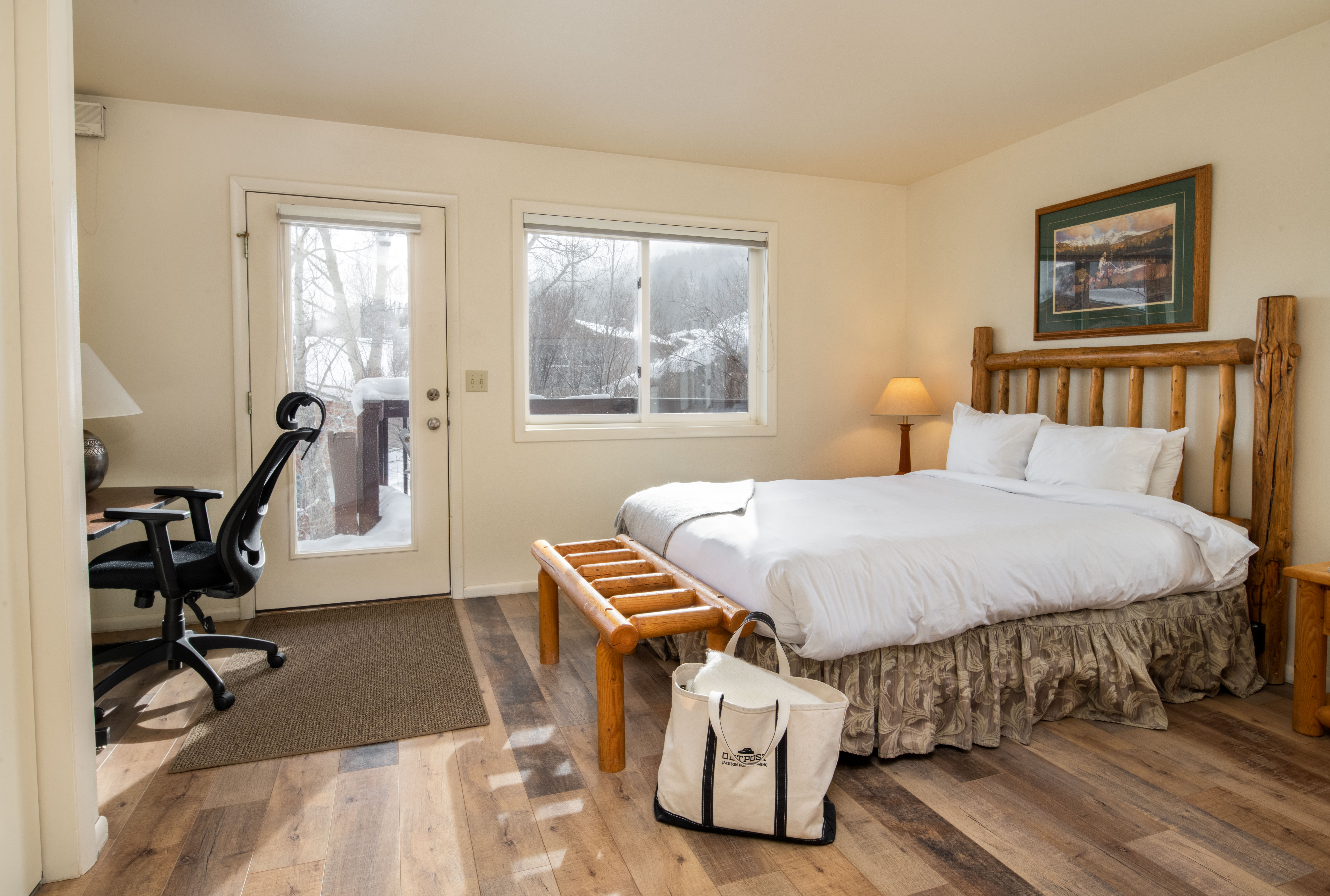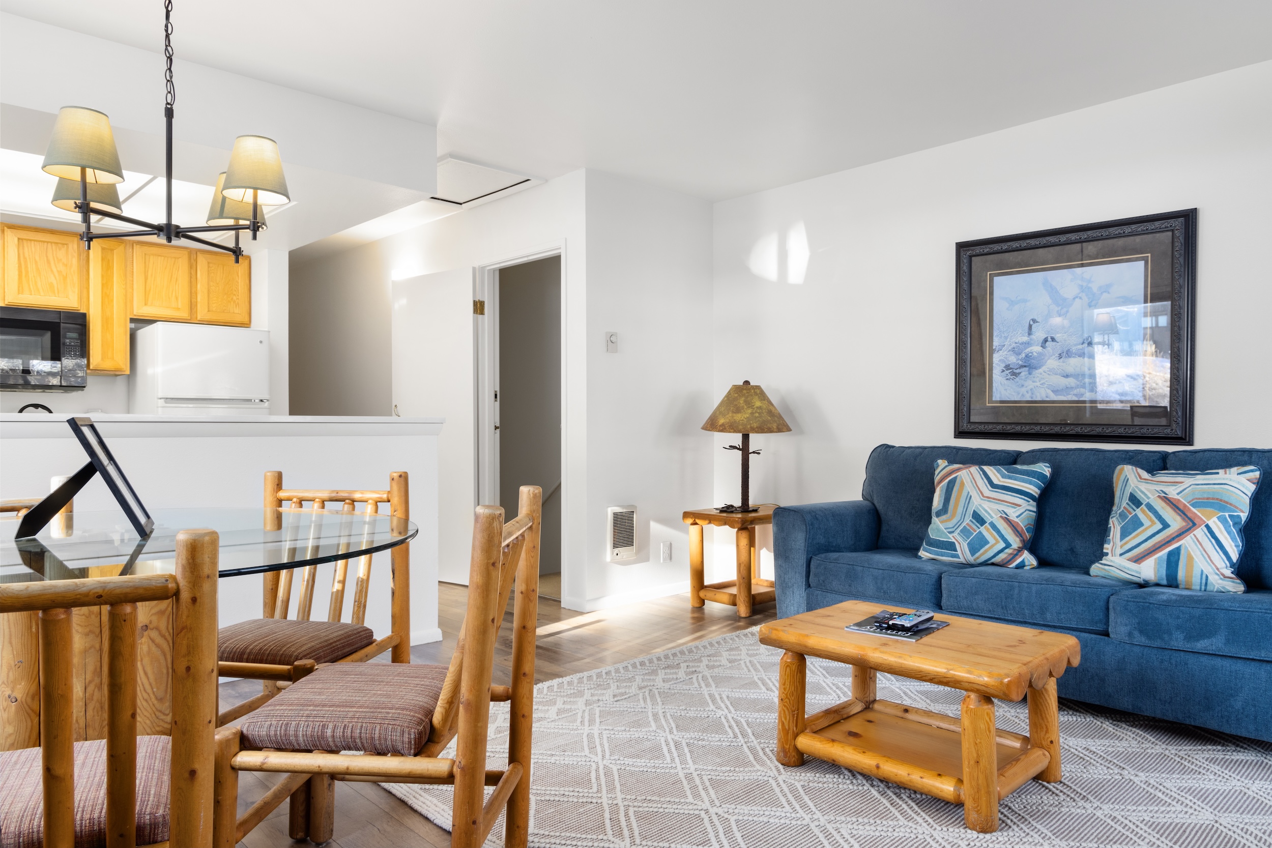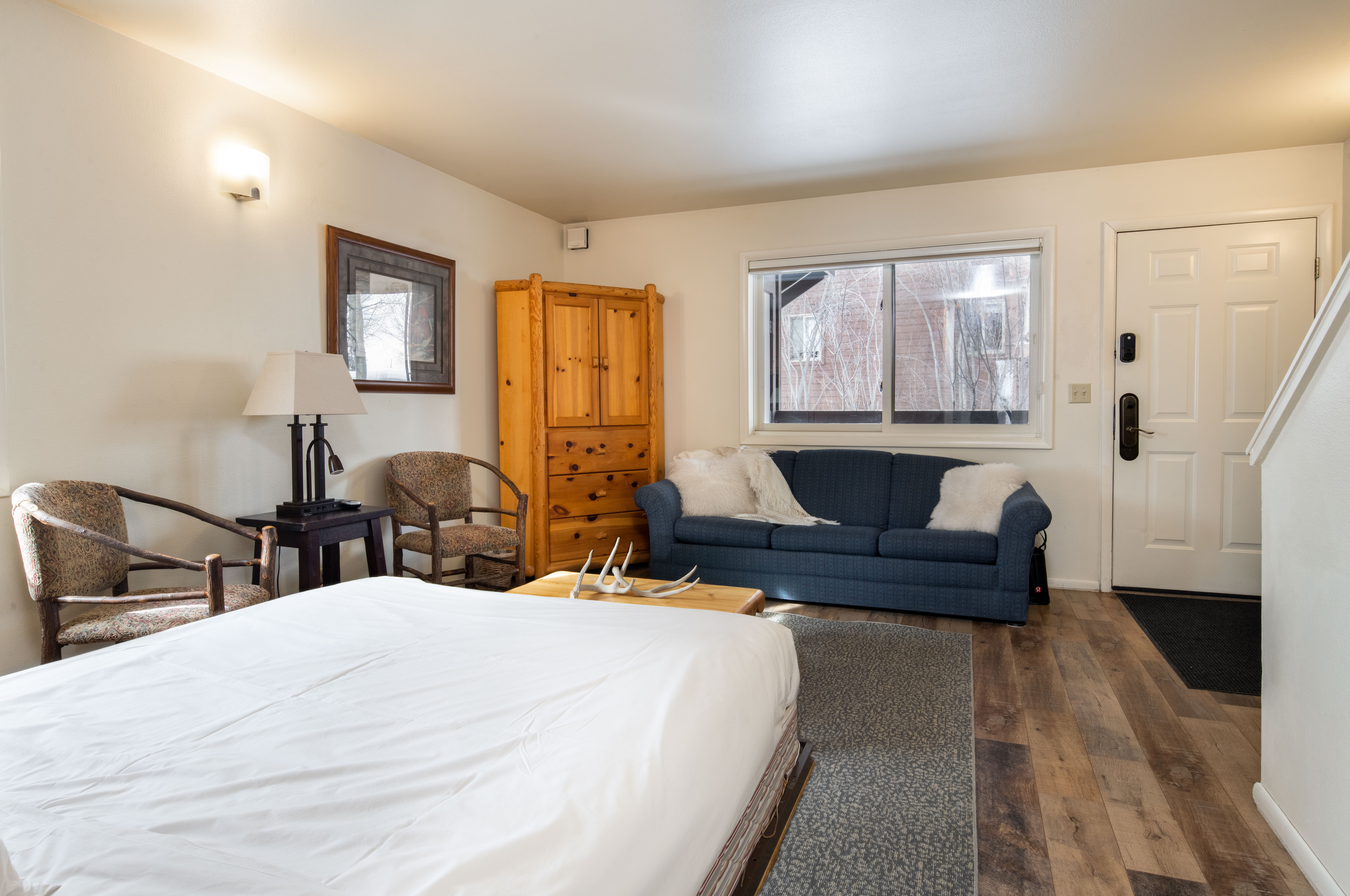 This classic two-bedroom condo is ideally located at the base of Snow King Mountain and walking distance to town square. There are multiple sleeping options to accommodate up to six guests at a time. With the option to enjoy mountain views on the terrace or curl up by the fireplace, Pitchfork 2306 is the perfect accommodation to experience everything the town of Jackson has to offer.