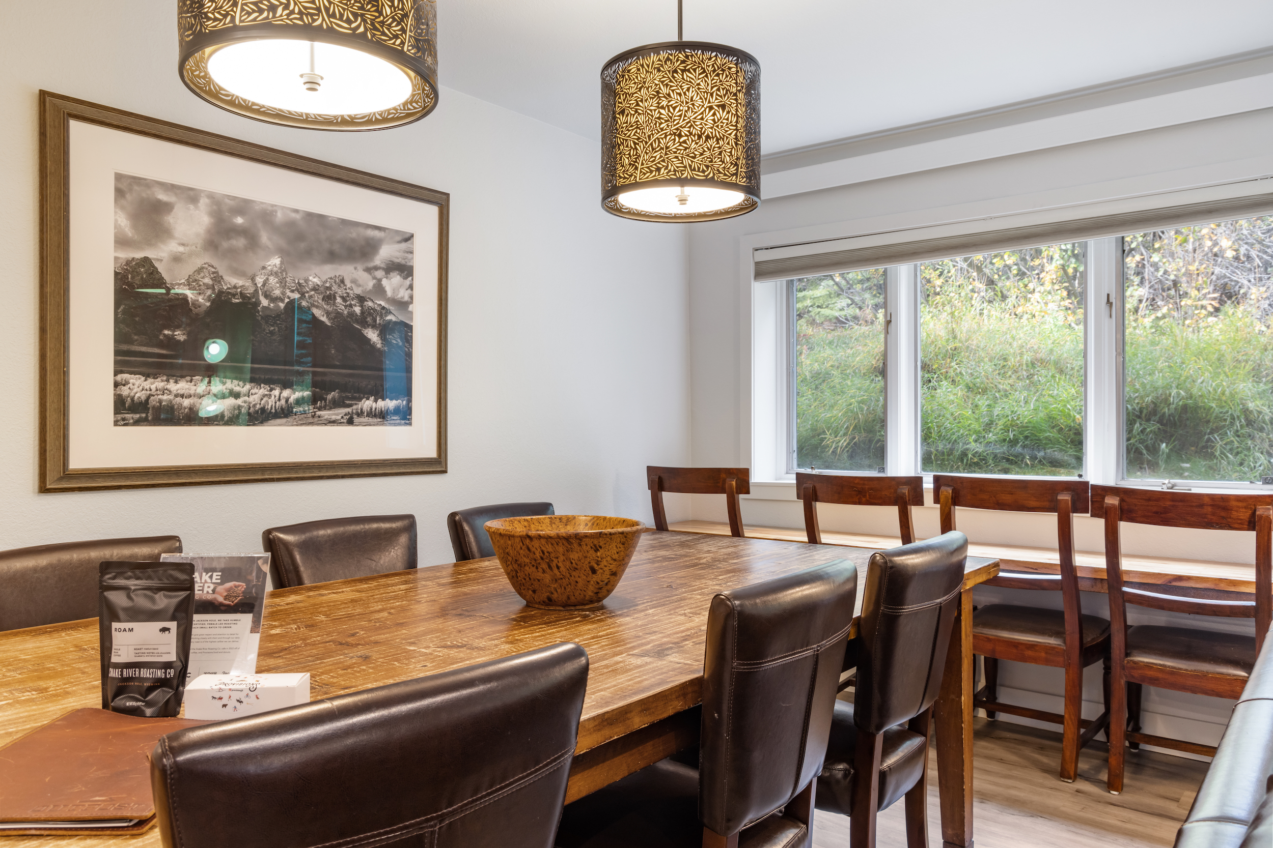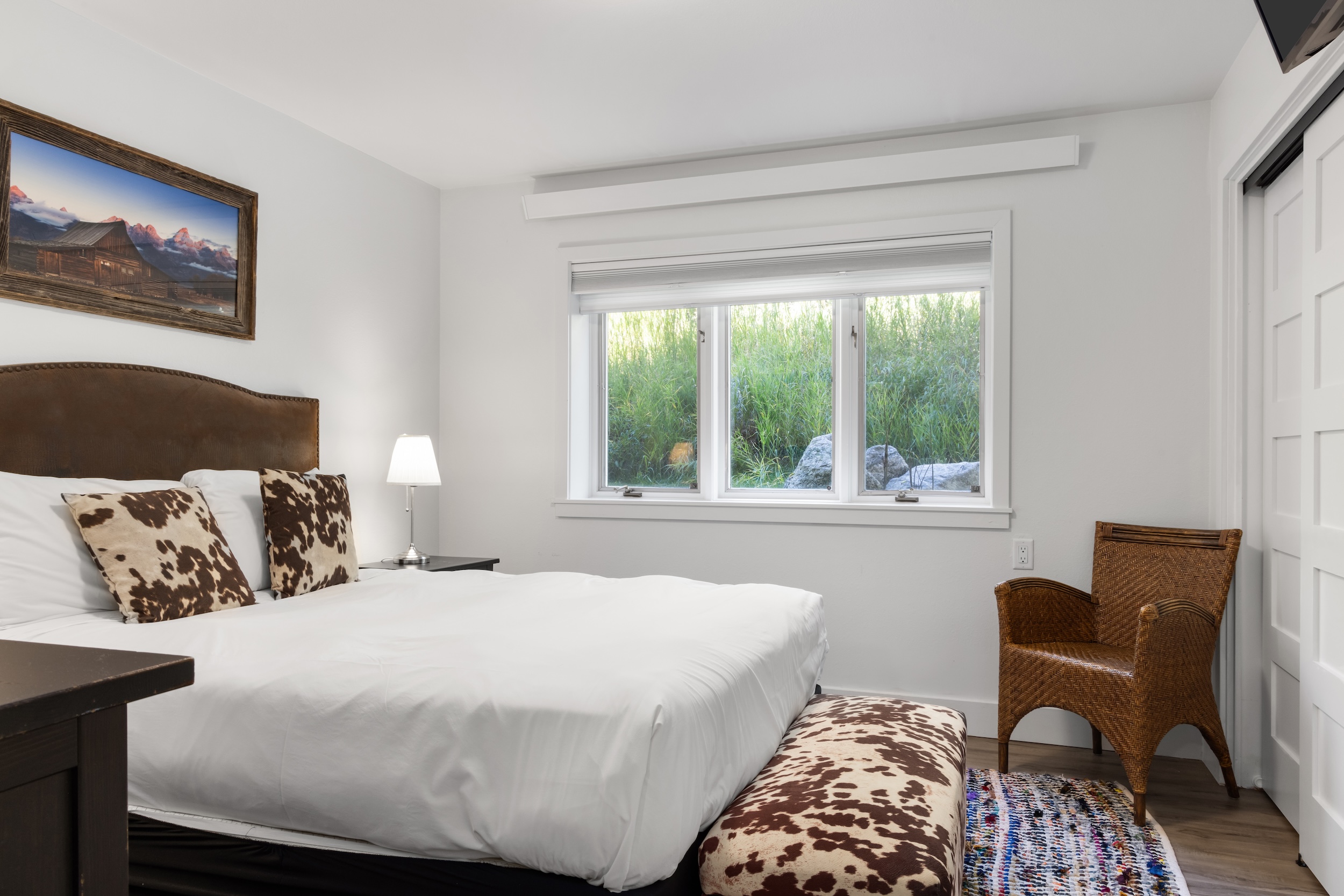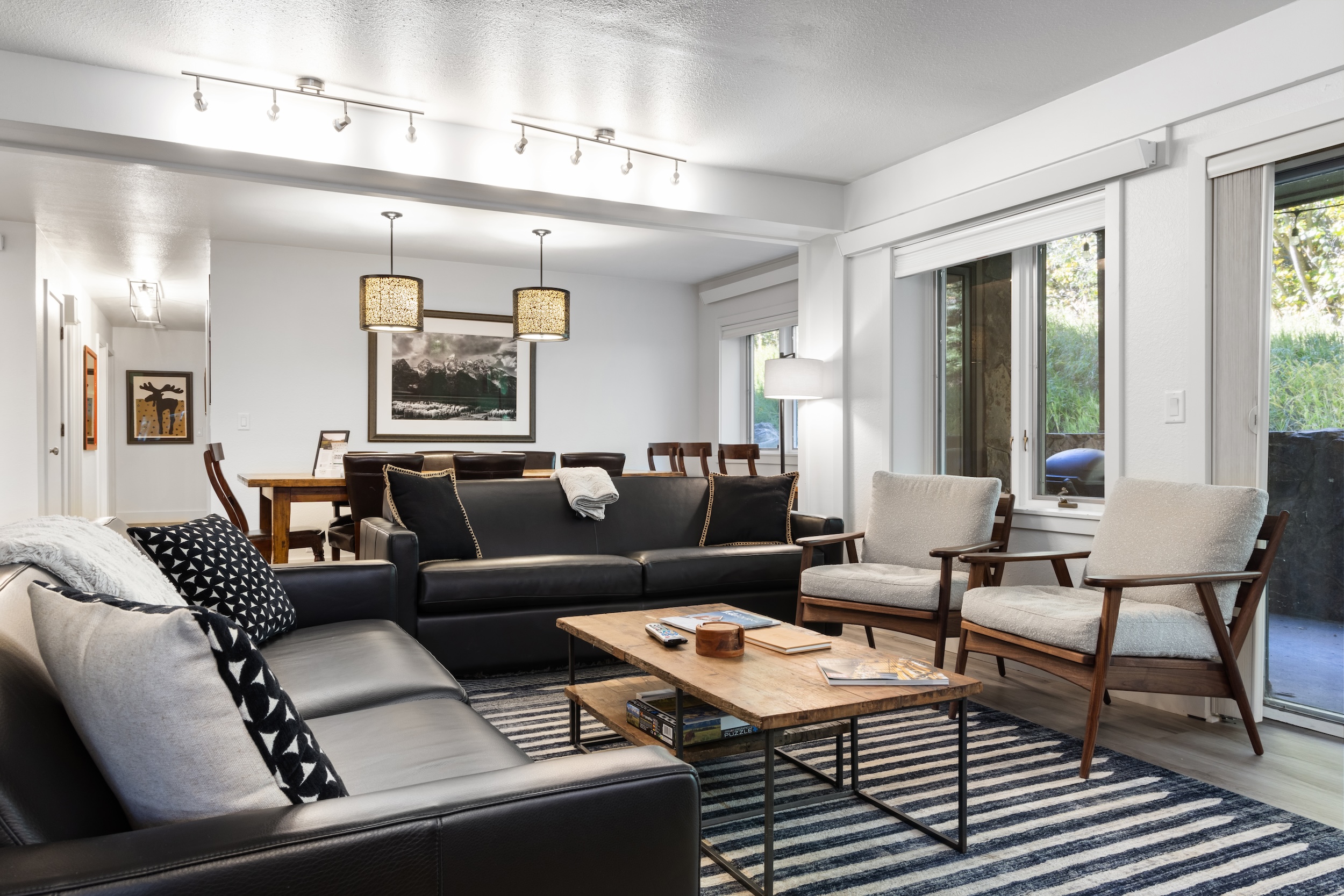 This comfortable three bedroom, three-bath, 1530 square-foot unit embodies classic Jackson Hole ski condo charm. The great stone fireplace invites you to relax and and enjoy your Western mountain getaway. The mudroom is perfect for shedding your ski boots or summer gear, and will make staying organized easy.
