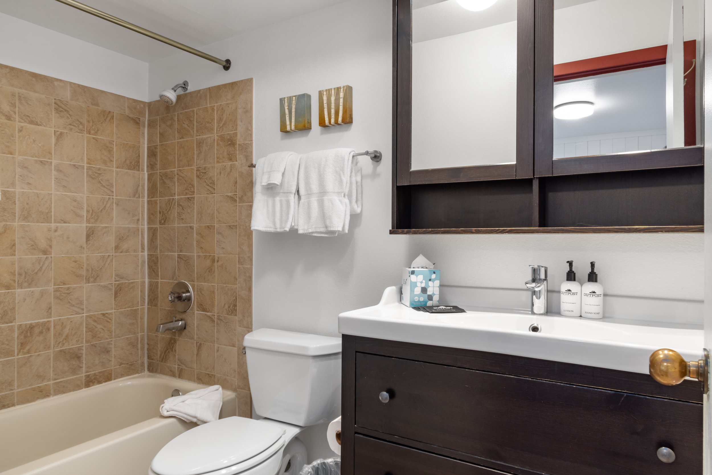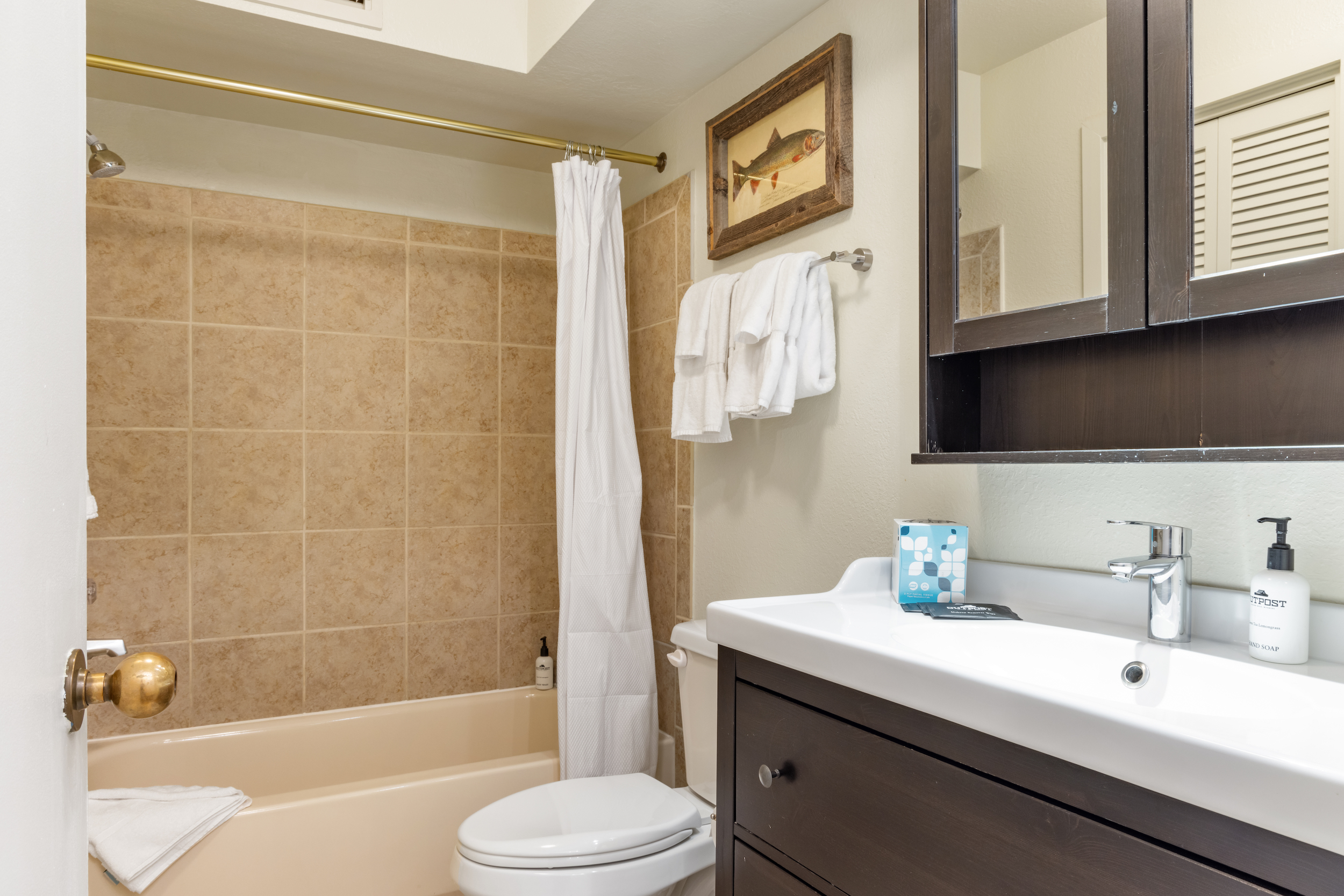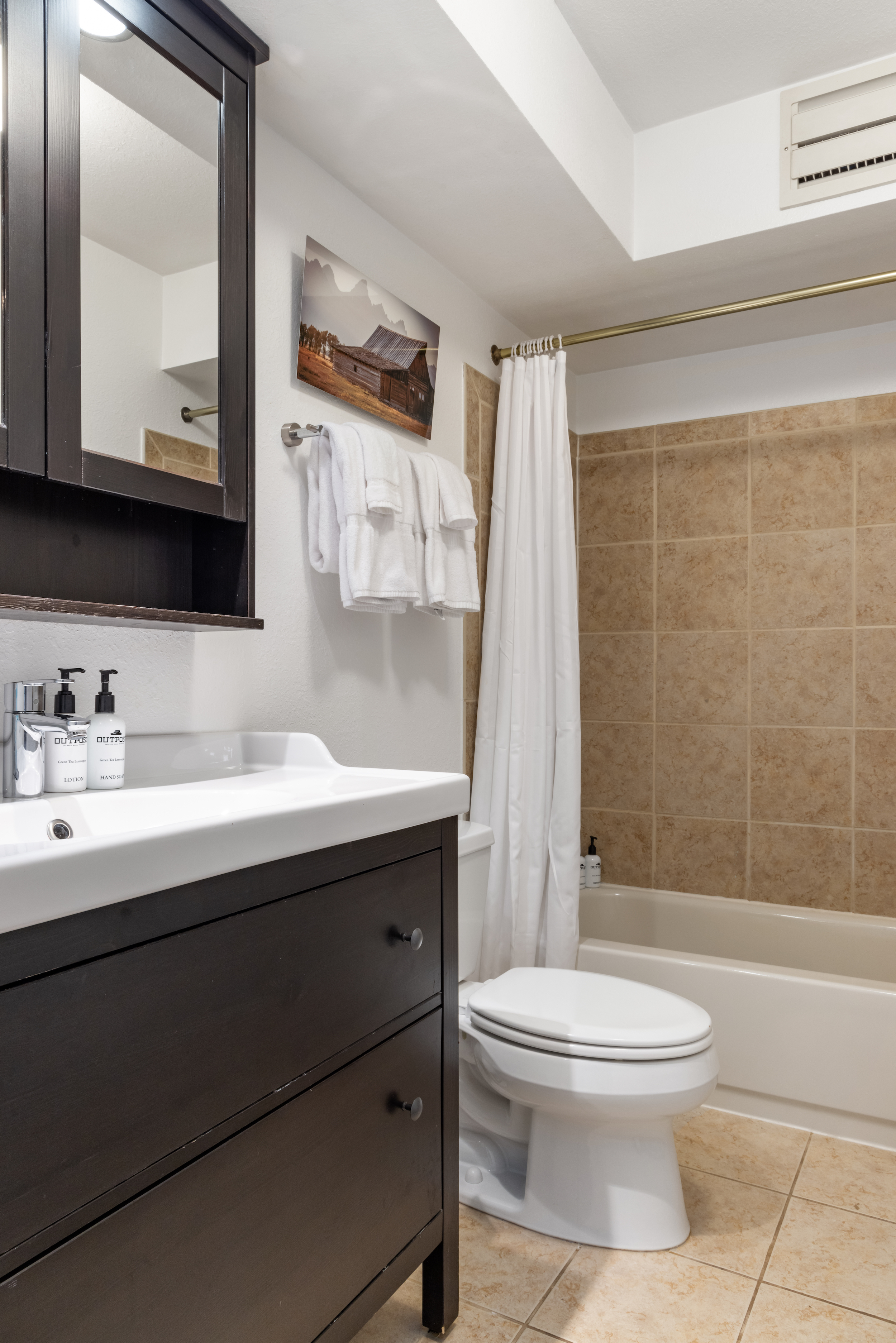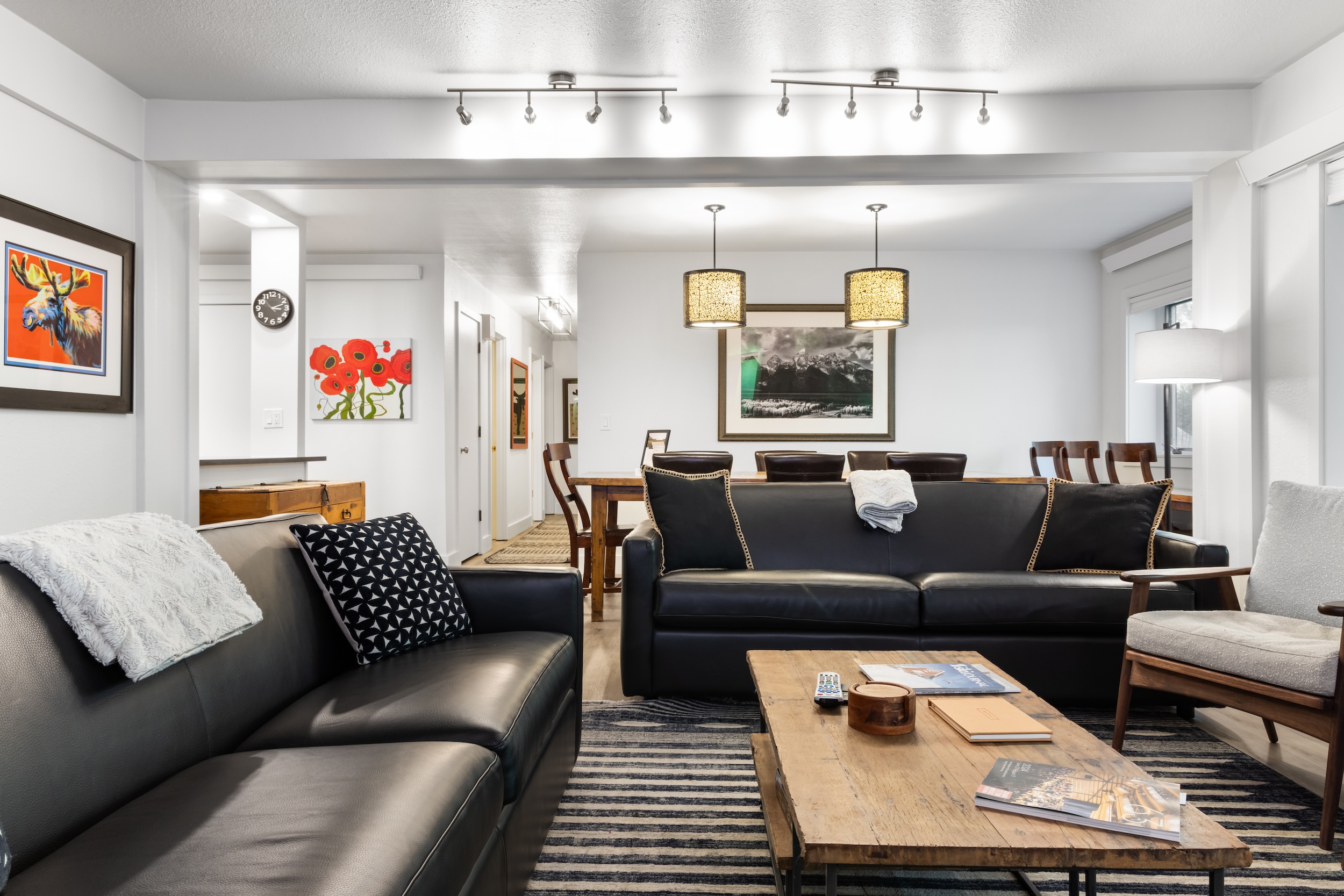 This comfortable three bedroom, three-bath, 1530 square-foot unit embodies classic Jackson Hole ski condo charm. The great stone fireplace invites you to relax and and enjoy your Western mountain getaway. The mudroom is perfect for shedding your ski boots or summer gear, and will make staying organized easy.
