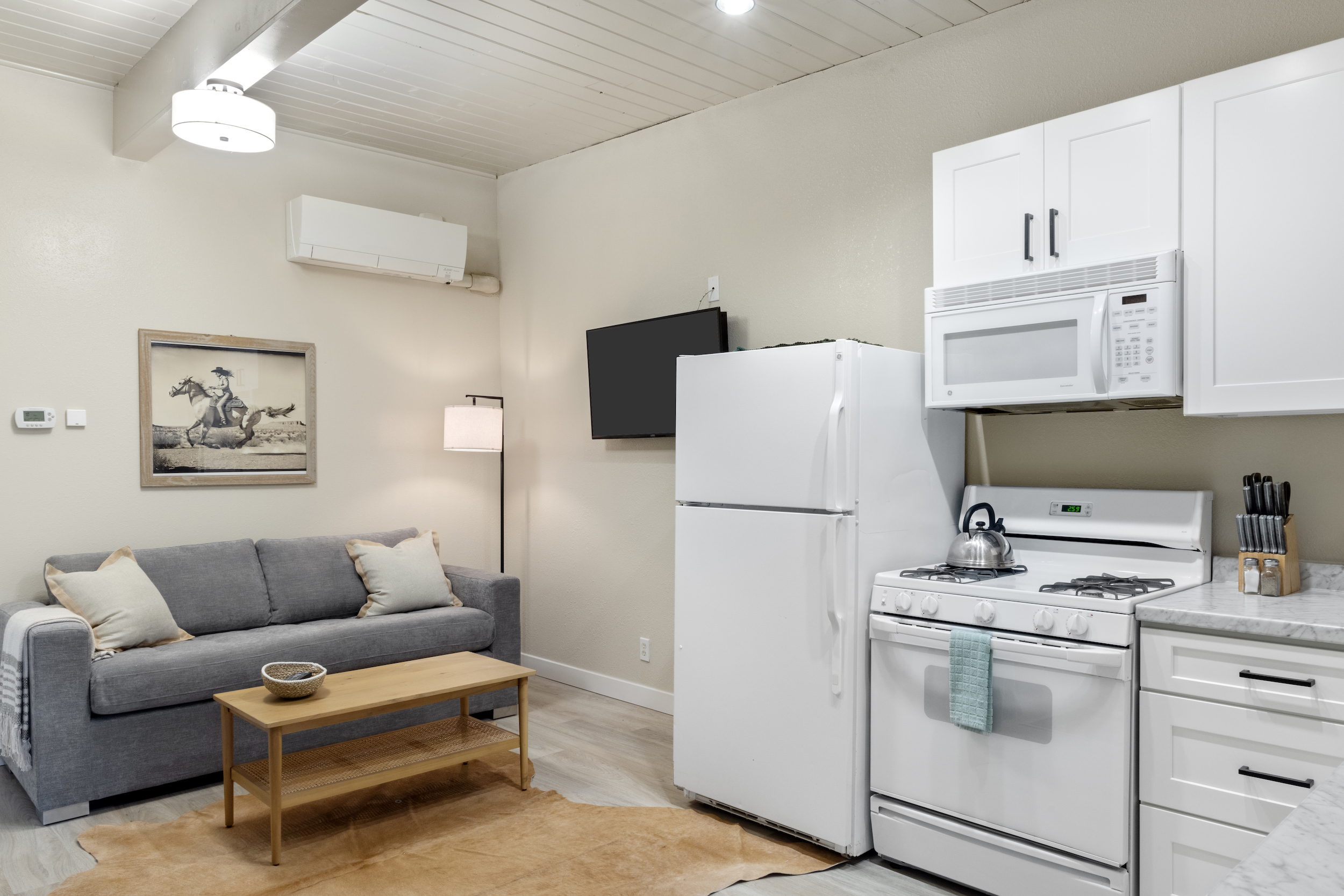 This newly renovated one-bedroom, one-bathroom, 350 square-foot condo is located within walking distance from some of Jackson’s finest restaurants, galleries, shopping, and activities. Offering a blend of comfort and convenience, Town Square Lodge 7 is the perfect getaway to experience all the things the vibrant town of Jackson has to offer.
