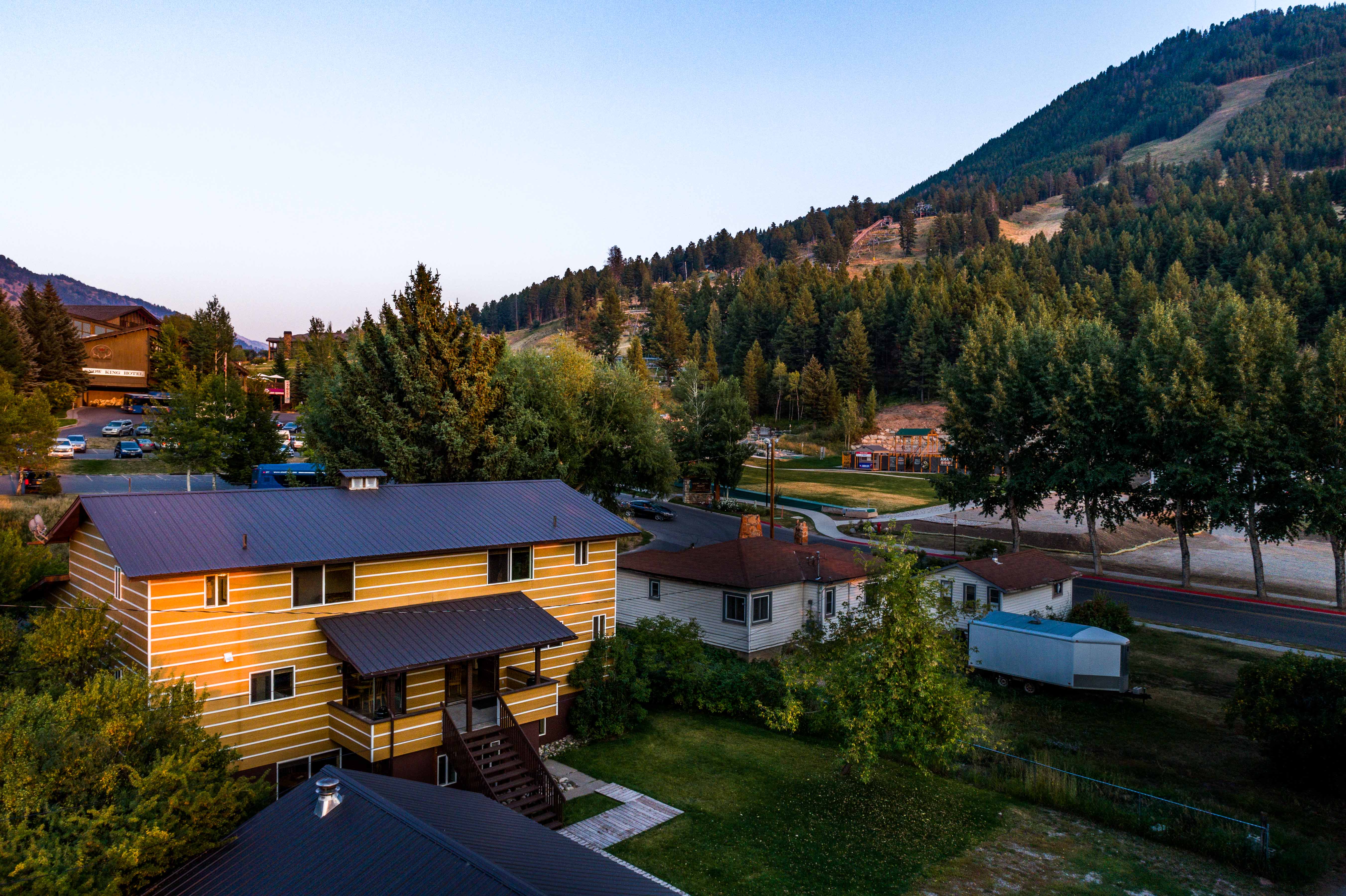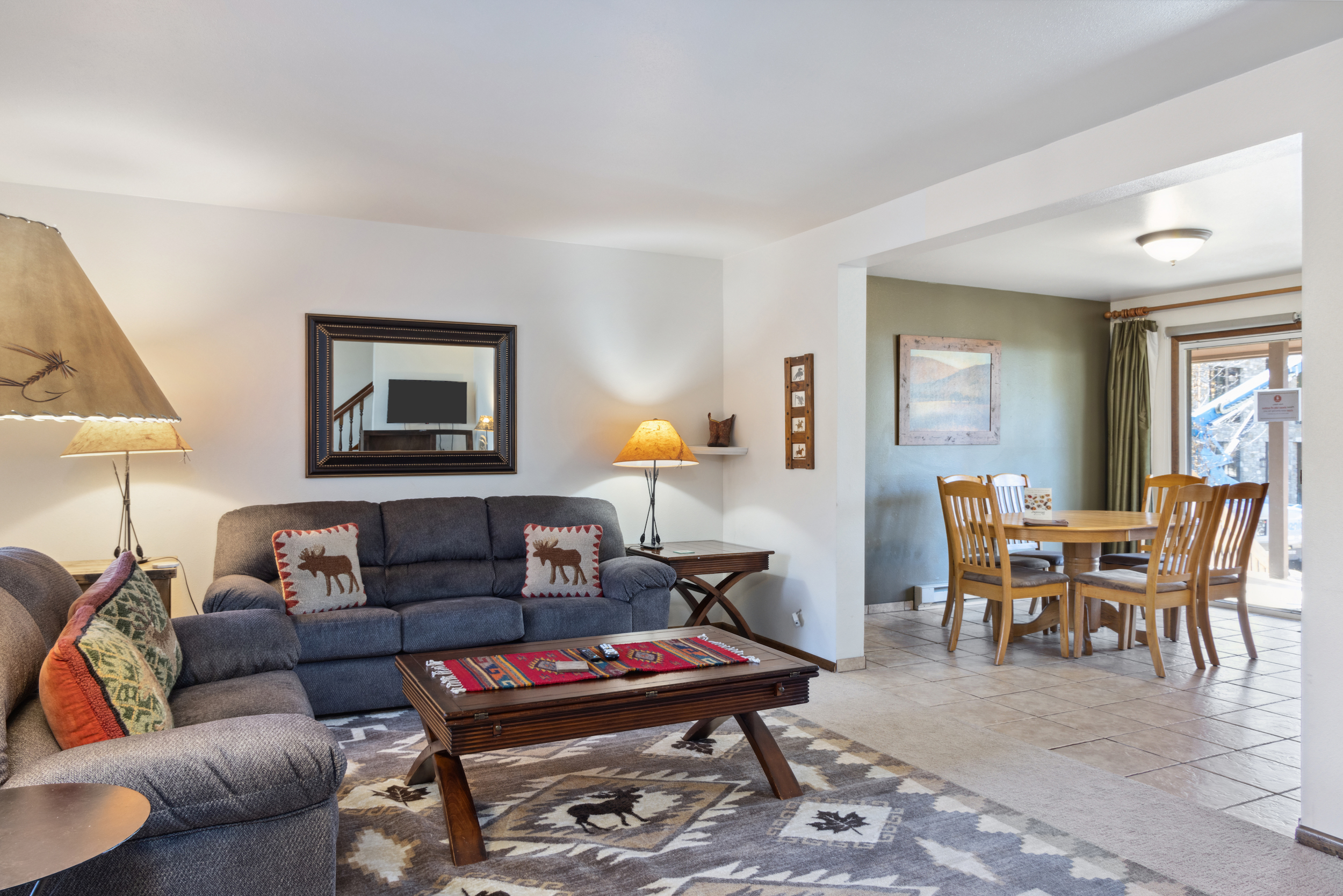 This 3 bedroom, 1.5-bath condo is located beneath Snow King Resort and is perfect for a family or group. The unit features multiple sleeping arrangements, a full open kitchen, and a large living room. Cookout on the shared grill with friends and family, relax in the communal green space outside, or simply enjoy the mountain views!